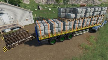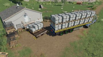 Please note: The pallets on the trailer and big pallet are not real pallets and are a visual representation only. You cannot pick them up with a fork. To unload, you drive the trailer to the appropriate sell point and you will be presented with an unload option. The pallets will unload automatically. The tension belts are all a visual aid and are not required to hold the pallets on, however they will hold other items on the trailer (such as the AGT pallet)… just don’t load the animal goods on at the same time or the universe may end… or you’ll get a graphics collision.