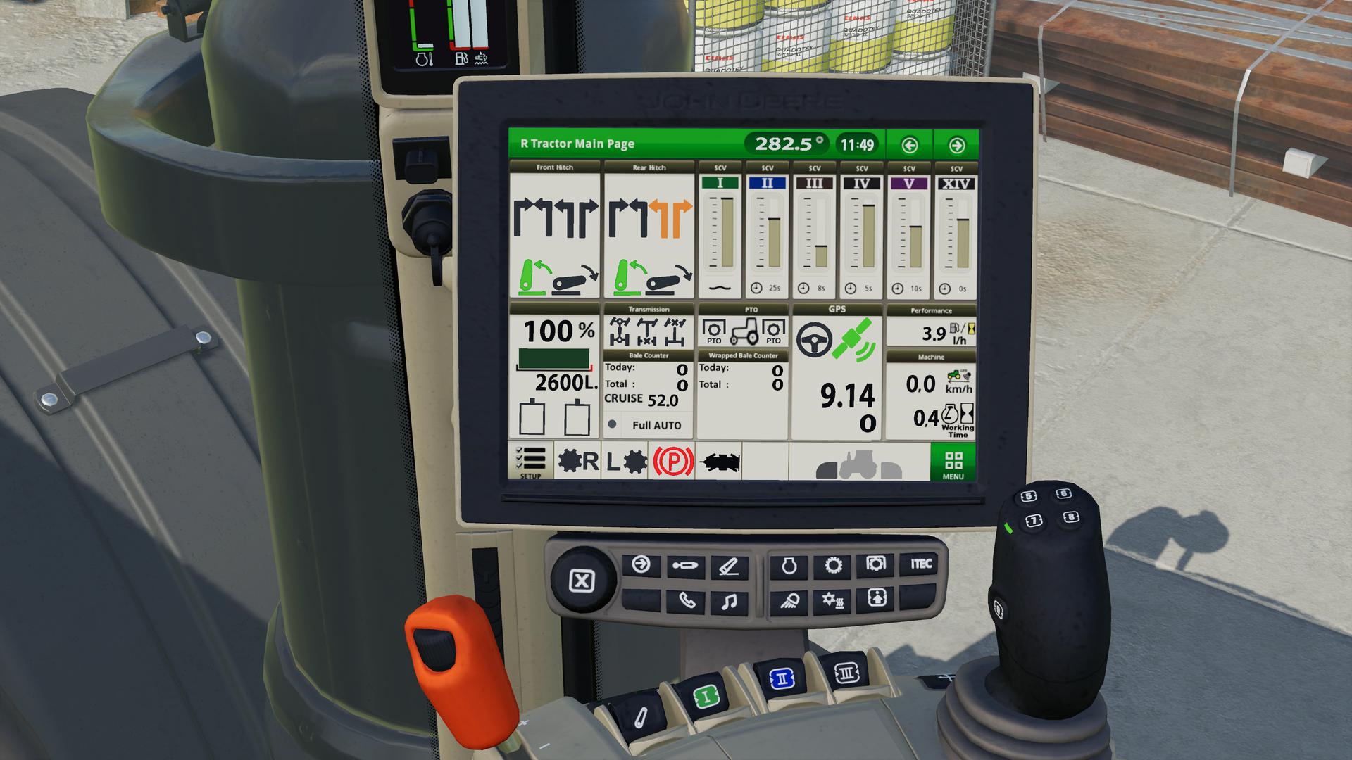 Furthermore, you can now adjust the cruise control in the vehicles from the John Deere Pack in the 0.1 km / h range. So you can e.g. set to 12.6 km / h. Standard key assignment is as follows: