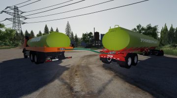 The pack includes: – KamAZ-65117 grain truck; – KamAZ-6520 ZSK; – Trailer grain truck; – KamAZ-43118 timber truck; – trailer timber; – KamAZ-54115 tractor; – Semi-trailer grain truck; – Semi-trailer timber truck; – Semi-trailer platform; – Food semitrailer; – KamAZ-53215 barrel; – trailer barrel; – KamAZ-55111 dump truck; – KamAZ-6520 dump truck; – KamAZ-53215 onboard; – Trailer Nefaz-8560; – Tank wagon; – Feldbinder ЕУТ 35.3; – Livestock semi-trailer.