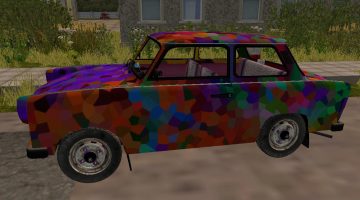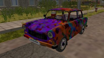 This a mod I found laying around from video, took it in a got a great idea. Many of these cars had been painted different colors after the Berlin wall fell. I took the idea and thought I could make one that looks like that! So here is the 1991 freedom rider. I do ask if you make edits to keep them private. I am not sure who the author is but I hope he sees this. The car can go 76 MP has a clean log, smoke, great horn, and real Trabant sound! I hope everyone enjoys this fun little car!
