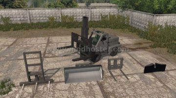Pack loader AP 4045. Included are forks for bales, forks for pallets, forks for pallets with boards, ladle and counterweight.