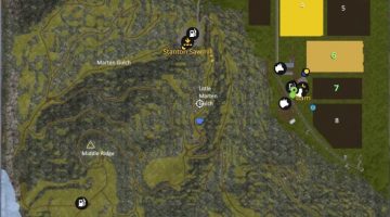 The best timber on the map is near the logging camps to the Southeast and Southwest. The logging roads in the mountains are challenging. Plan out you haul routes carefully. The steeper trails down the ridges are for skidding logs. Since they are not used often they will frequently have dead trees across them. Those trees can be removed with a chainsaw.