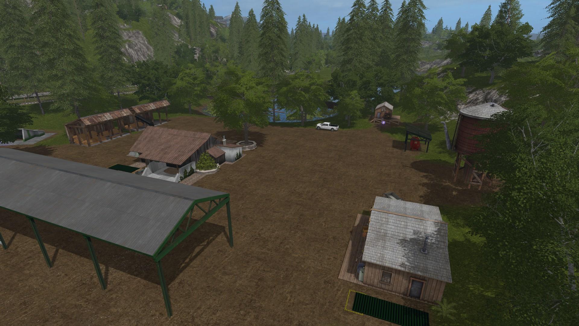 My first map, “God’s Country” was a learning experiance that made me very happy. Hopefully this one will make others happy. Personally I think it beautiful but I’m biased. Its definitely more efficient. Though Jesus was perfect, I’m not so any constructive critisiam will be welcome. Hatefull comments not so much but, infamy is better than anonymity. The barrels, boxes and pallets don’t auto sell so there is a skidsteer provided and a close sell point if you wish to use the woodworks. I feel if everything is automated, whats the point of playing the game. If you want automation, drop your logs off at Rebecca’s tables or the saw mill. If something dosen’t work or you find a floating bush…let me know specifics such as near field 23 near such. I want it to be as good as possible so users will get as much pleasure from playing it as I have creating it. God bless.