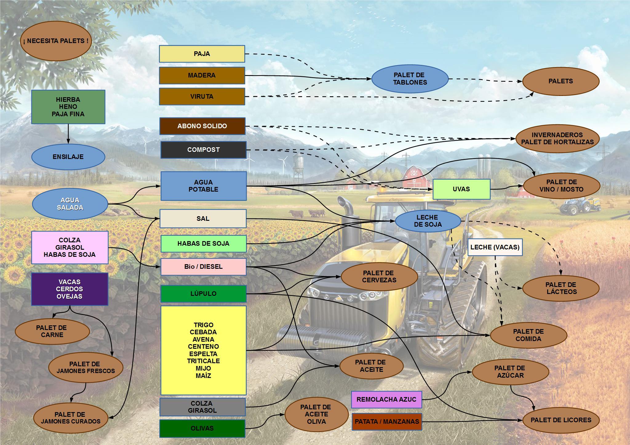 · NEW: Slaughterhouse, bring your animals and get fresh meat and ham pallets. The animals must be transported in the transport car “El Pozo” that is included in the map, in the section animals, at the end of the whole.