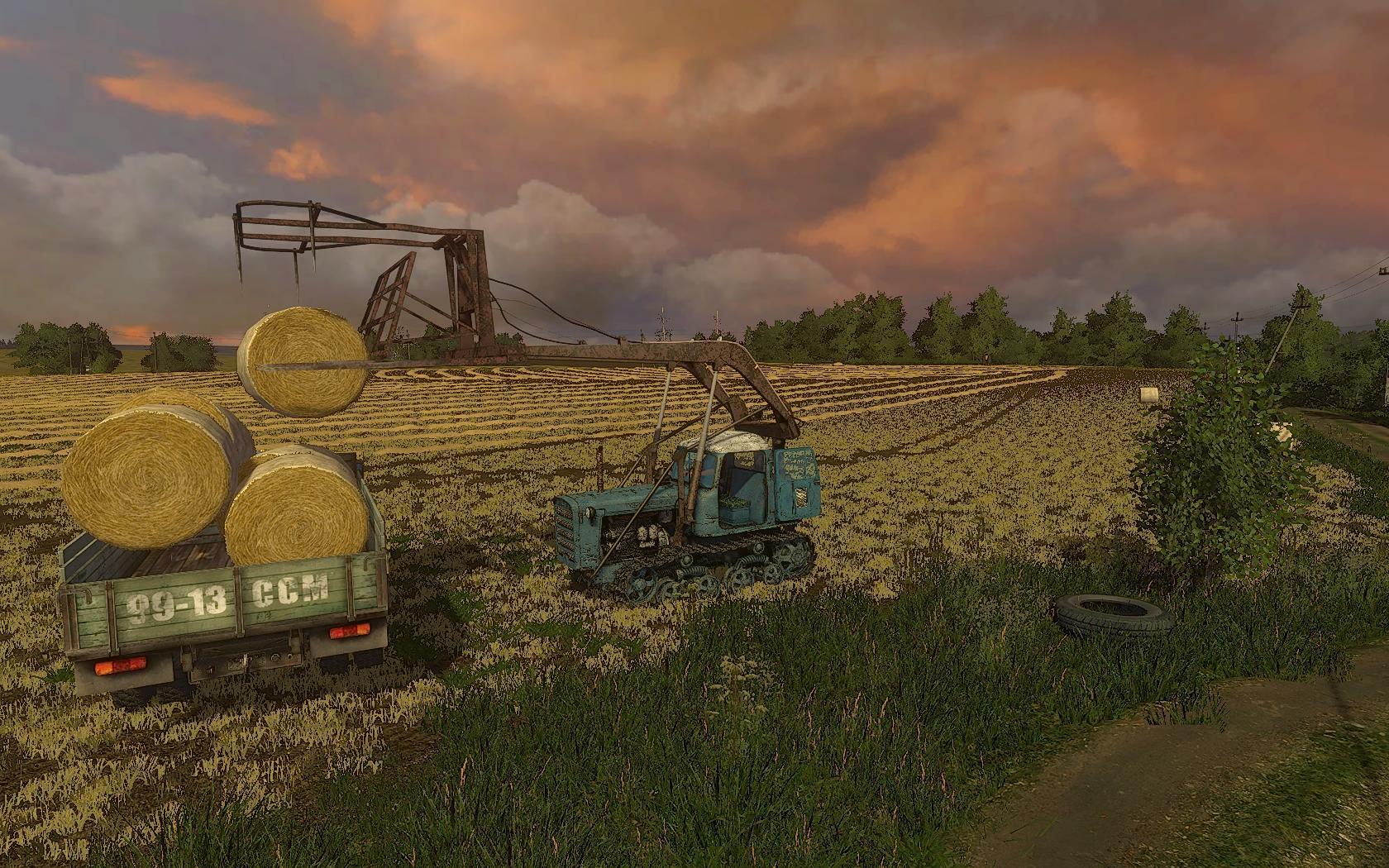 Tracked tractor DT-75 Kazakhstan c. The price – 10 600. Power – 75l / s. Max. speed – 12km Tank – 245 liters. Working lighting. Noise isolation. Animation of the fan, driver, motor, starter, gearshift lever, gas on the engine, chassis, dashboard, animated levers. Doors open, windows go down. Adjustable rear hinge (mouse). Dynamic exhaust, leaves traces and dust from under the tracks. Washes. Included is a heap. Pure log (Thank you Suleimann for the sounds)