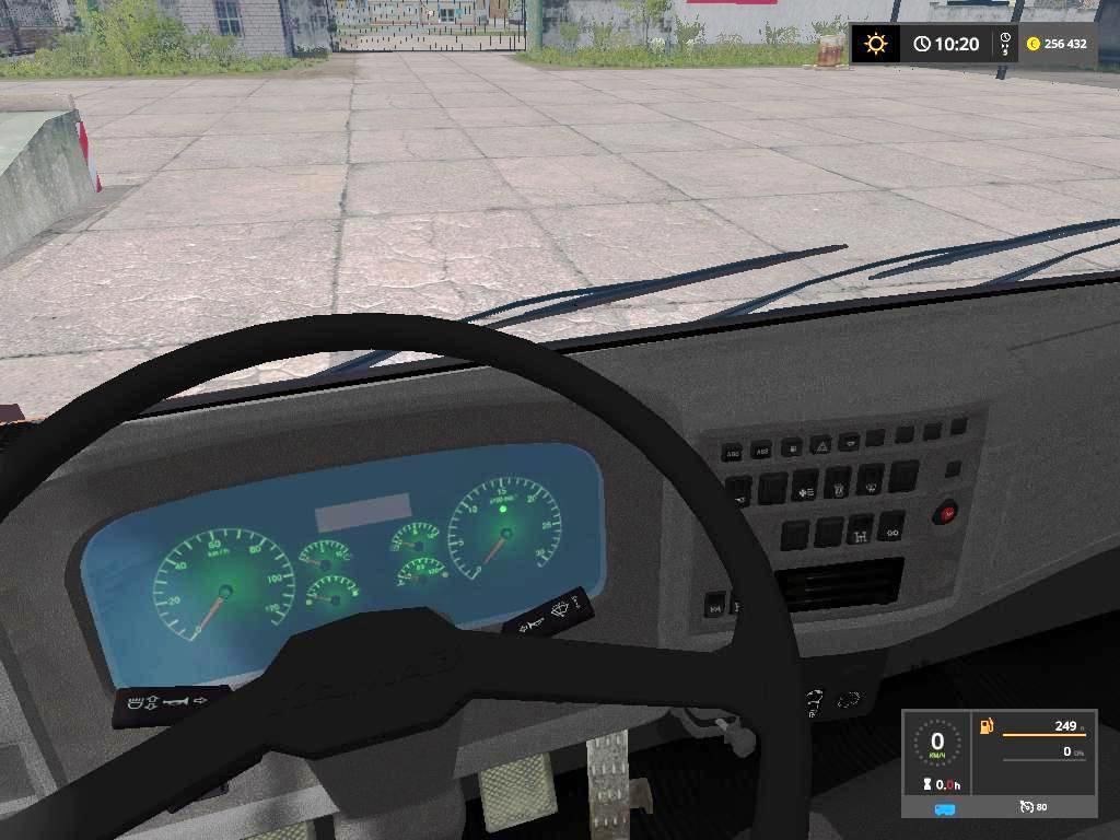 Added an animation of opening the doors and tilting the cab Log is clean Power 240 hp The speed of 81 km / h. Working dashboard and mirrors, farmer’s hands animation Volume: 15400 + 15400 Transports: Standard Cultures Washable Light Equipment Leaves Trails Dust from under the wheels flies.