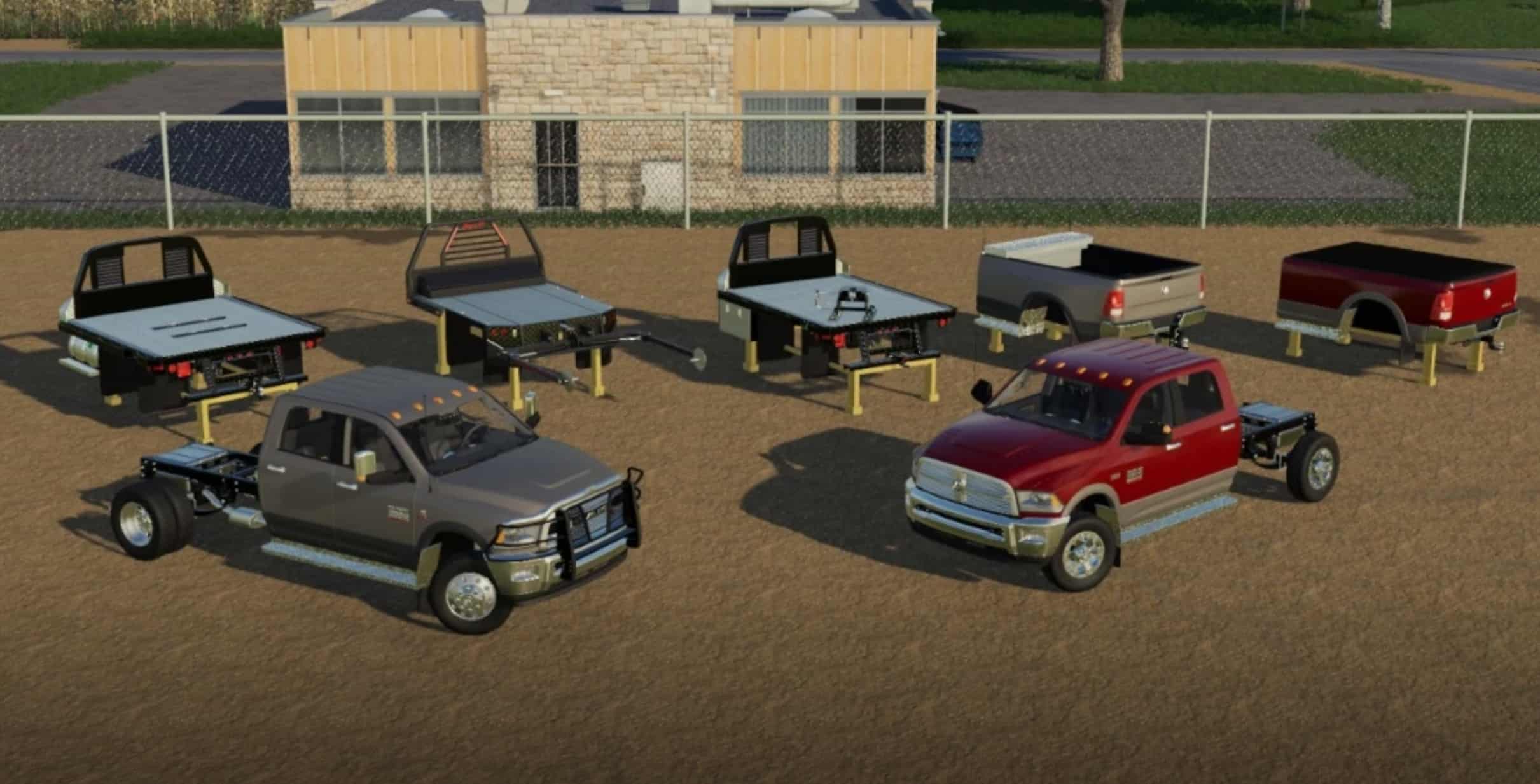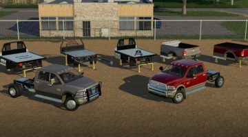 The Beds are all bought under the Misc category in the trailer tab, not the tractor. The Stock bed has the most options to create a great-looking farm truck with bed covers, a toolbox, some bed wips, and even a new topper. The only downside to the stock bed is it contains the only error so far found in the mod not caused by a mod conflict, and that is an overlap node error, but that is due to the topper door and bed cover being connected to the same animation. The tailgate is mouse-controlled and ready for all your farm use needs.