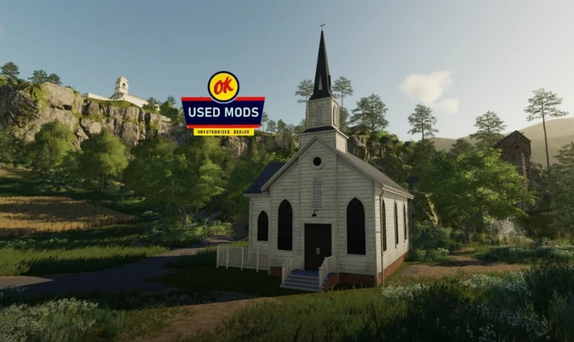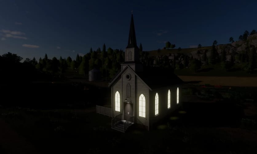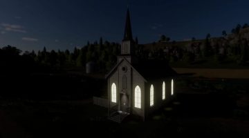 All new to FS19 is this placeable church. OK Used Mods is pleased to bring you the first installment of our simple placeable series. Place this anywhere on your map to add a little character. This building does not have an interior and serves no purpose other than a decorative item. The lights automatically turn on at night to bring your town to life.