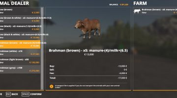 This mod modify the original buyable animals to be more differents, eat and produce more depending the species you buy.