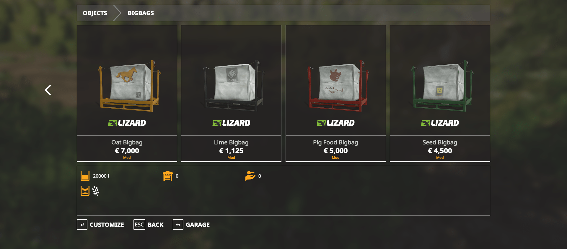 FS19 Bigbags and Pellets- Selectable Capacity 5K-20K
