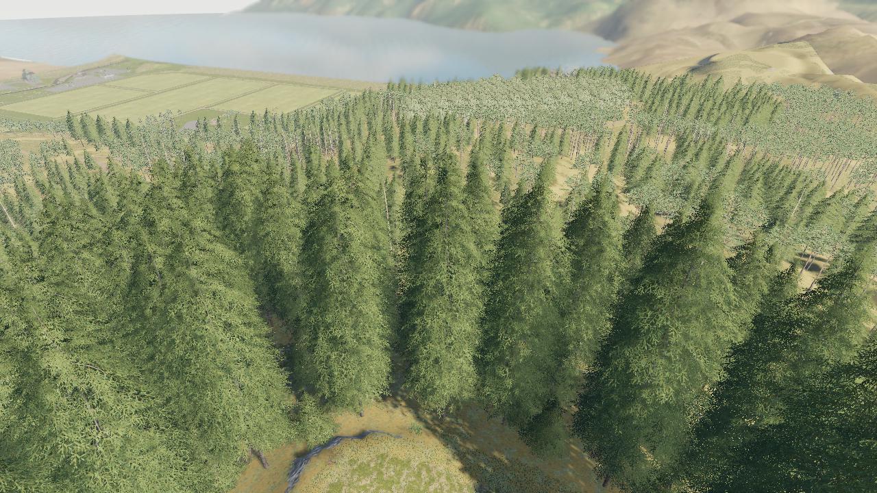 This map has BIG trees and will require a modded harvester to cut them, they are all over by now. FBM, FDR,and myself have posted them.