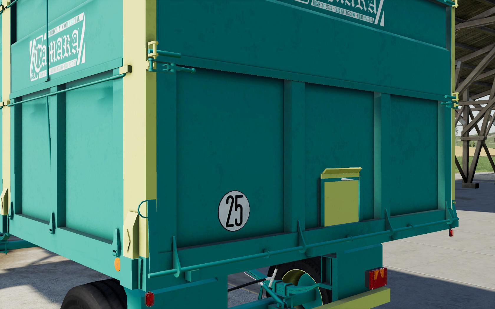Trailer of folding sides of the spanish brand Camara. Two axles chassis. Dimensions 6000mm in length, 2550mm in width and 1550mm in height.