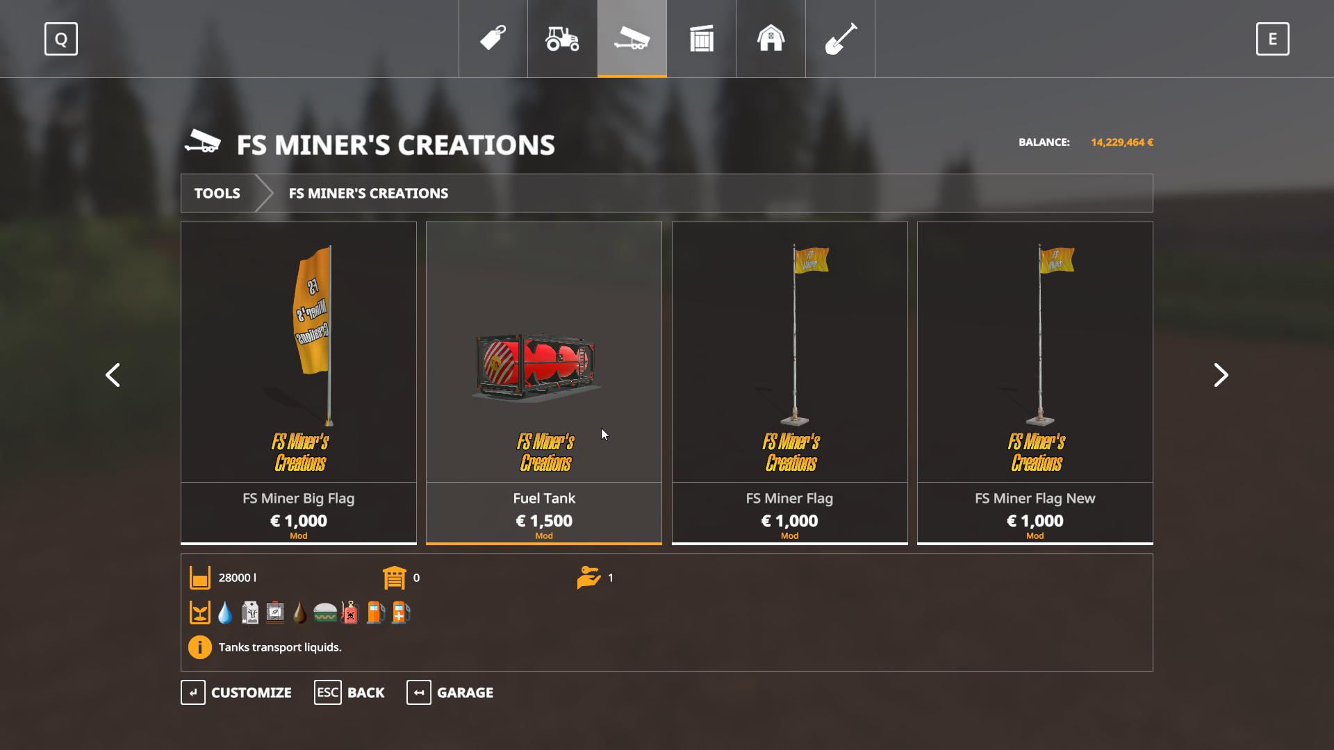 FS Miner’s And this time I create a new fuel tank to place at your base and refill your machine there.
