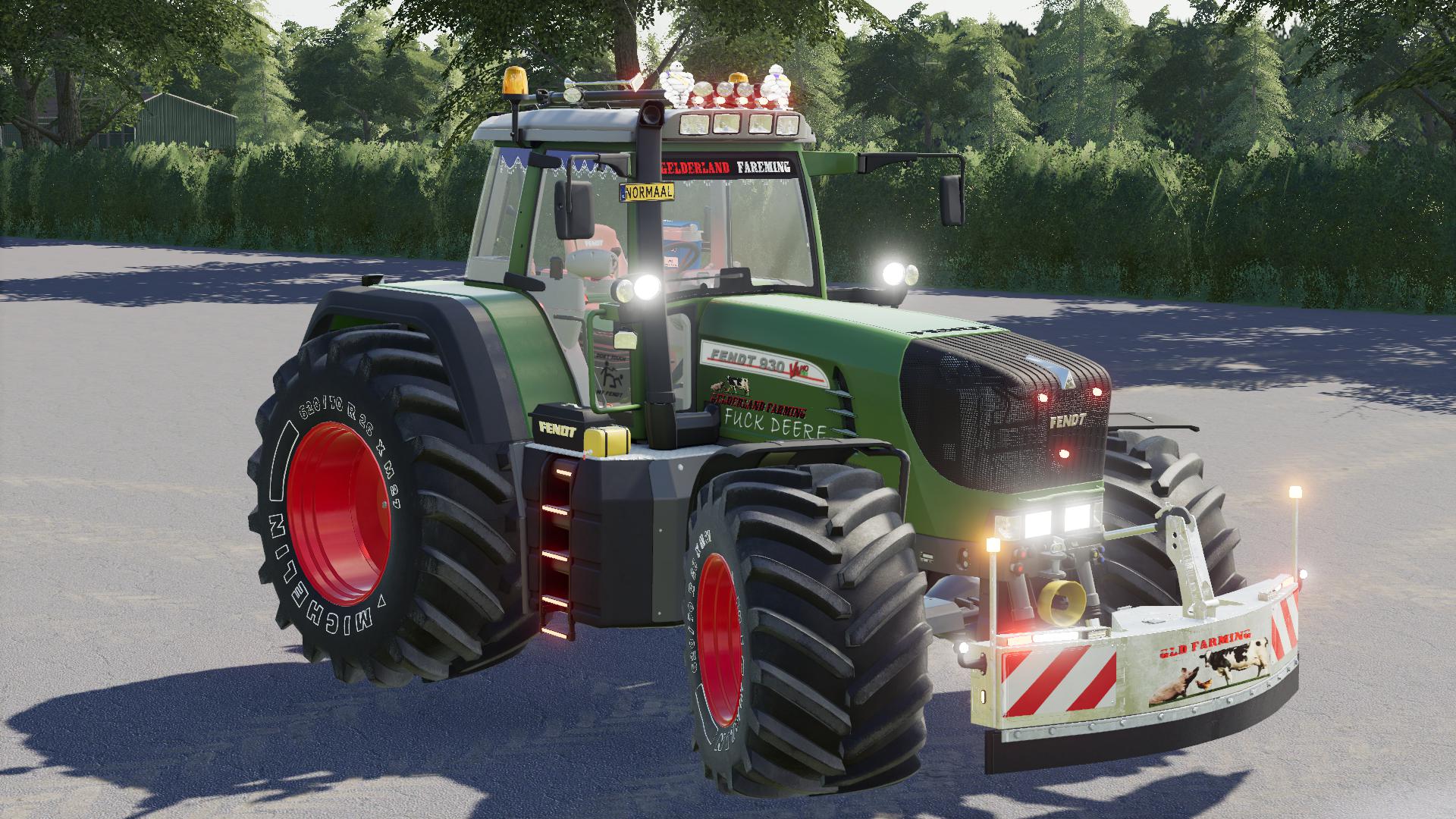 Fendt Model: 900 TMS Vario Productie: 2002 – 2006 Standaard motor: MAN D 0826 LE zes cilinder turbo, 6,87 liter Powershift versnelling: Vario Max snelheid: 55 km / u Prijs: 250200 € Vermogen: 160 – 300 – 400 PK Upgrade: wielmerk, wiel, carrosseriekleur, velgkleur, motorkleur rooster, configuratie fronthefboom, spatborden, zijbord, werklichten Winkelcategorie: grote tractoren Mod ondersteund: eenvoudige IC, geleiding besturing (alleen pc) Changelog 1.5.0.0 – nieuwe geluiden – enkele texturen gerepareerd – vertalingen – achterste hulpstuk – voorste opvouwbare arm Changelog 2.0.0.0 – optionele werklamp – ondersteund Realistisch cabinebeeld mod – ondersteund REA mod