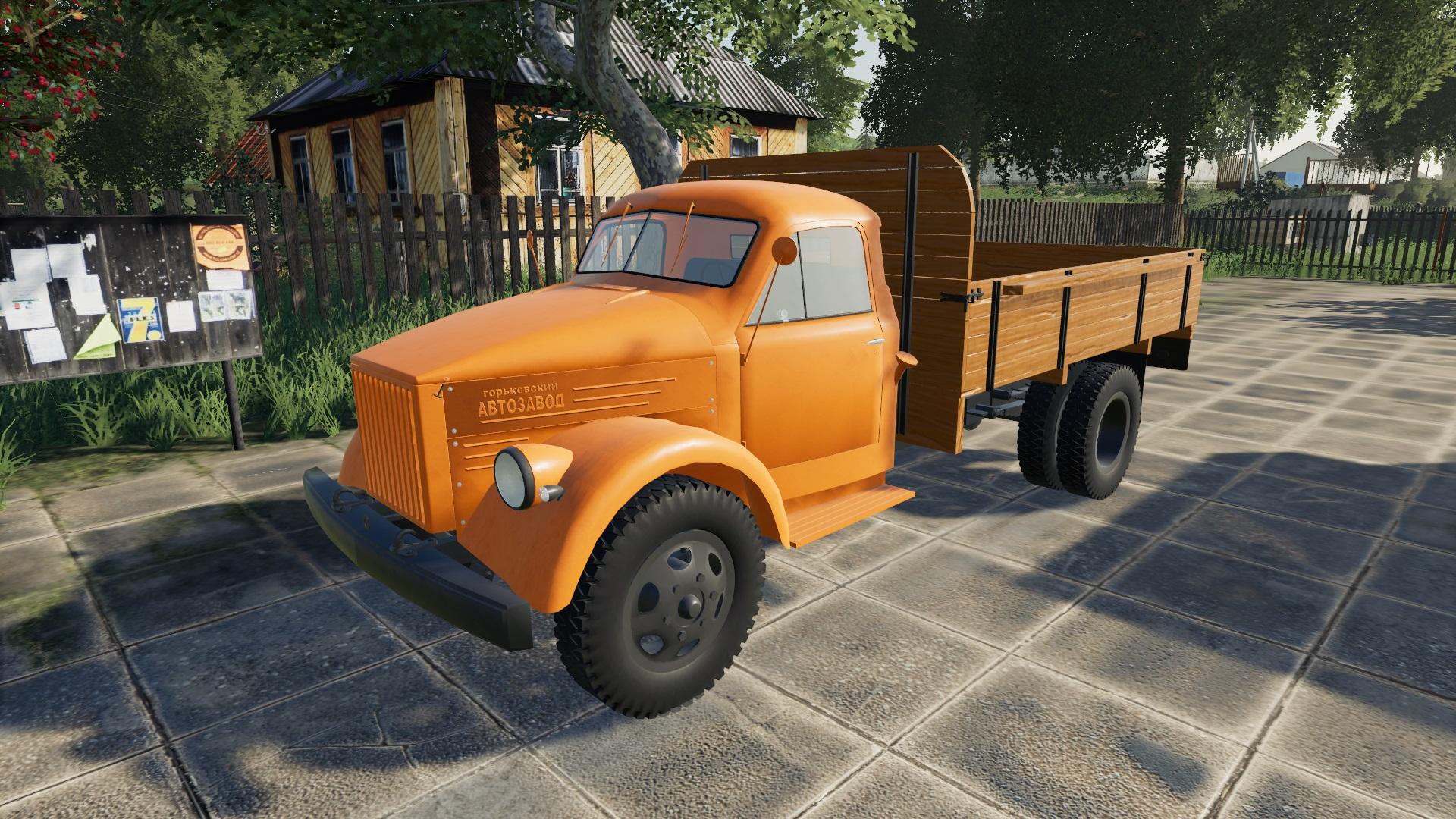The mod includes: GAZ-51 modular: – Power: 51 kW / 70 hp .; – Speed: 70 km / h; – The volume of the fuel tank: 90 l.; – Cost: 20 240 €; – The choice of the main color; – Choice of rim color; – Working lighting; – Working dashboard; – Working mirrors; – leaves traces; – It also catches modules from the GAZ-53 Pak. Body module: – Cost: 4 800 €; – The choice of the main color; – Working lighting; – Volume: 3 000 liters.