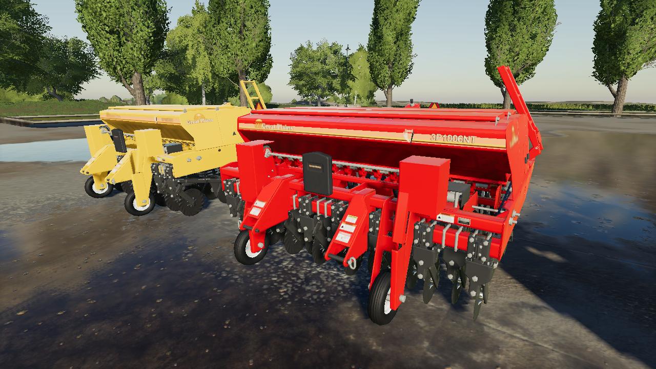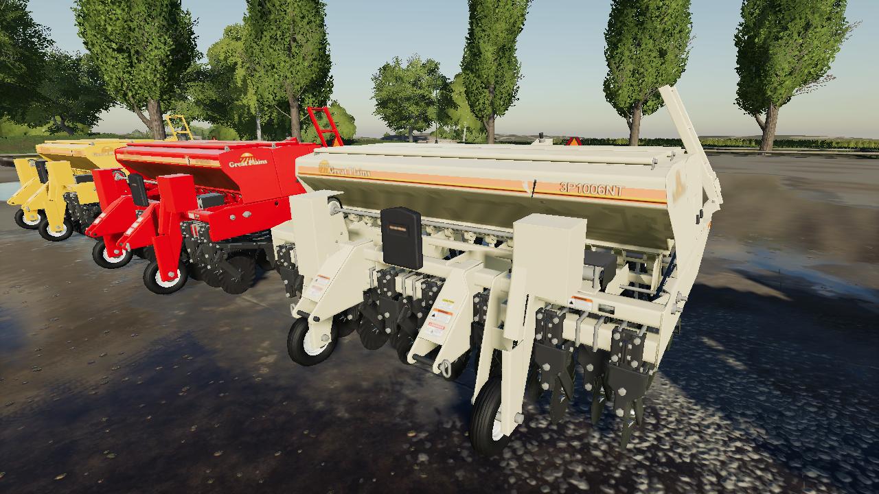 Great Plains 3P1006NT for FS 19 colorable with all the Great Plains brand colors, wheels are colorable with all the default colors. Price is lowered, seed capacity has been increased, and usage has been slowed. Hope you enjoy this mod, but if you don’t find it useful just simply remove the zip file from your mods folder.