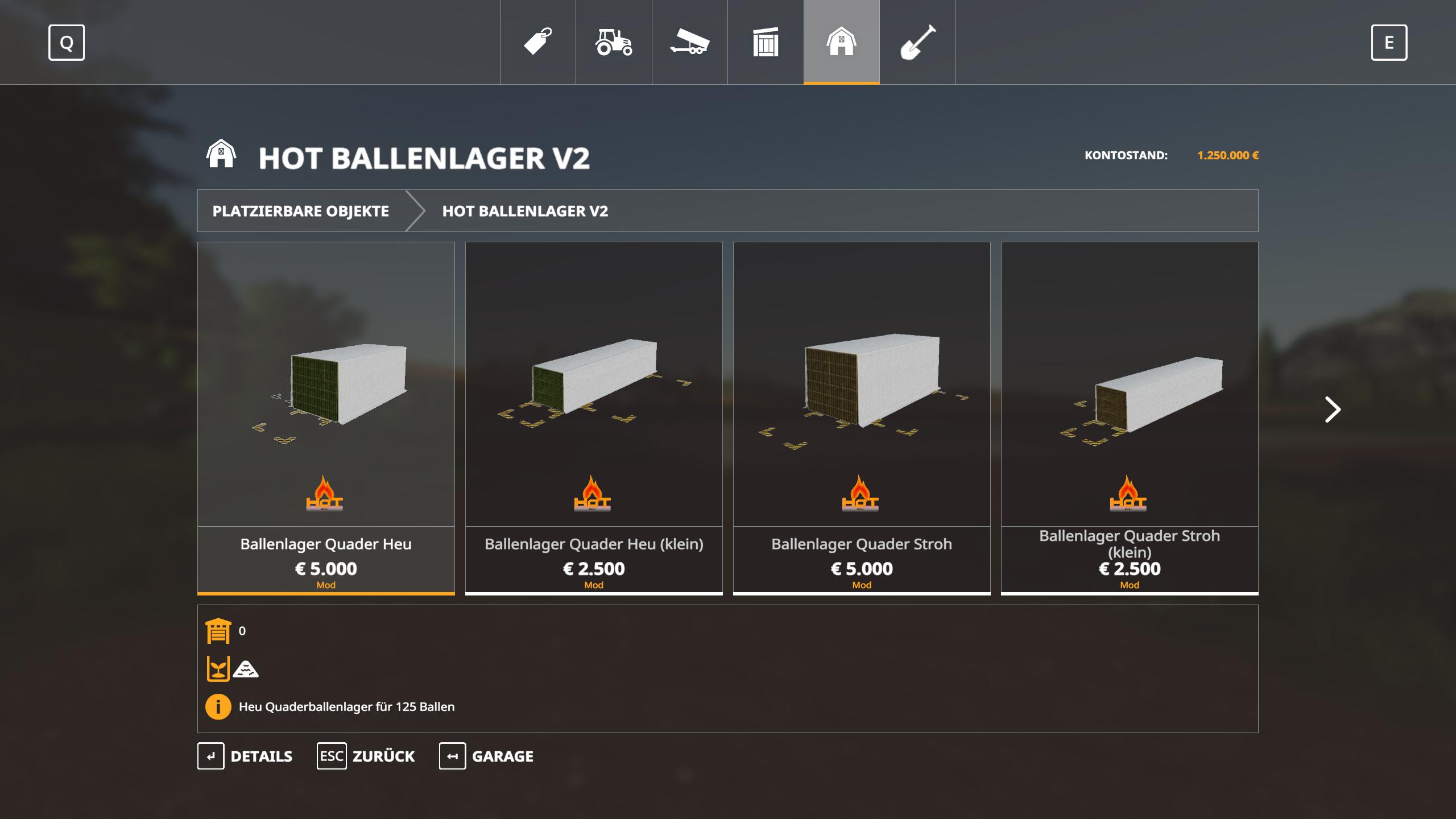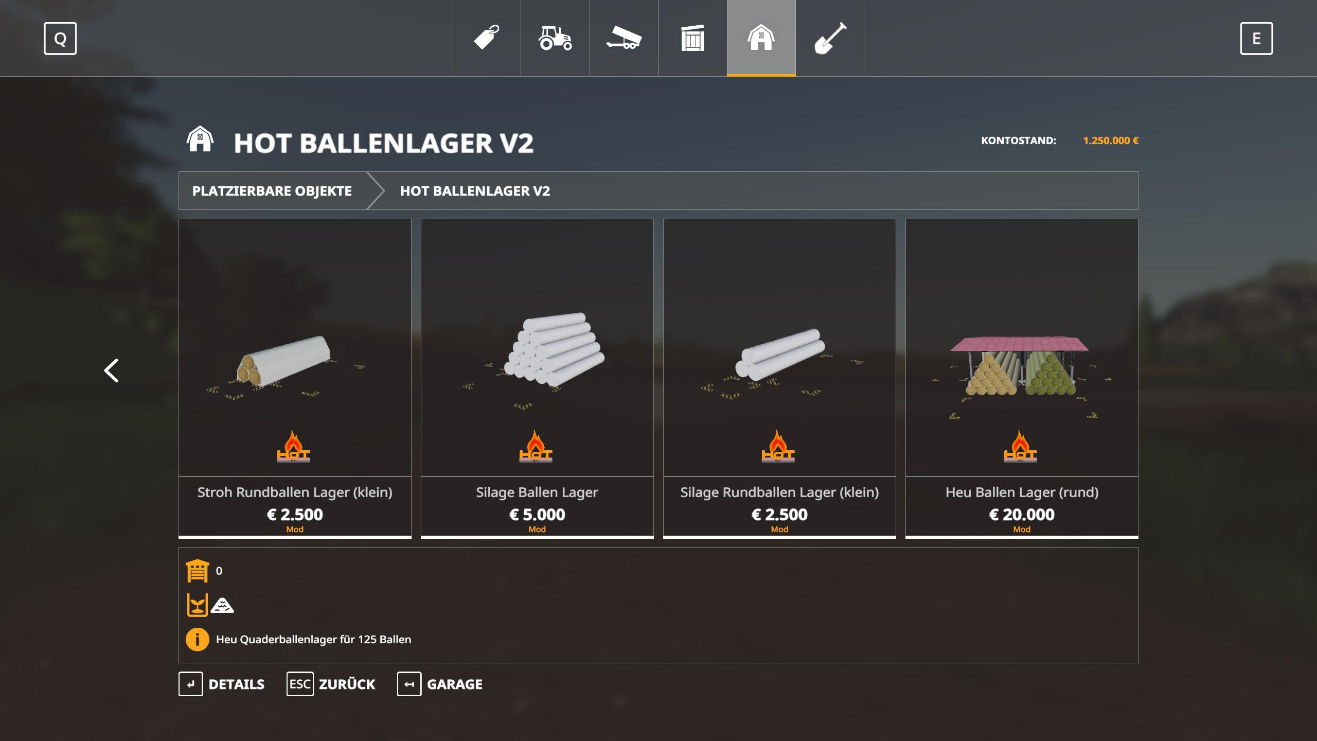 Alle Ballenlager befinden sich nun in einer eigenen Kategorie HoT Ballenlager