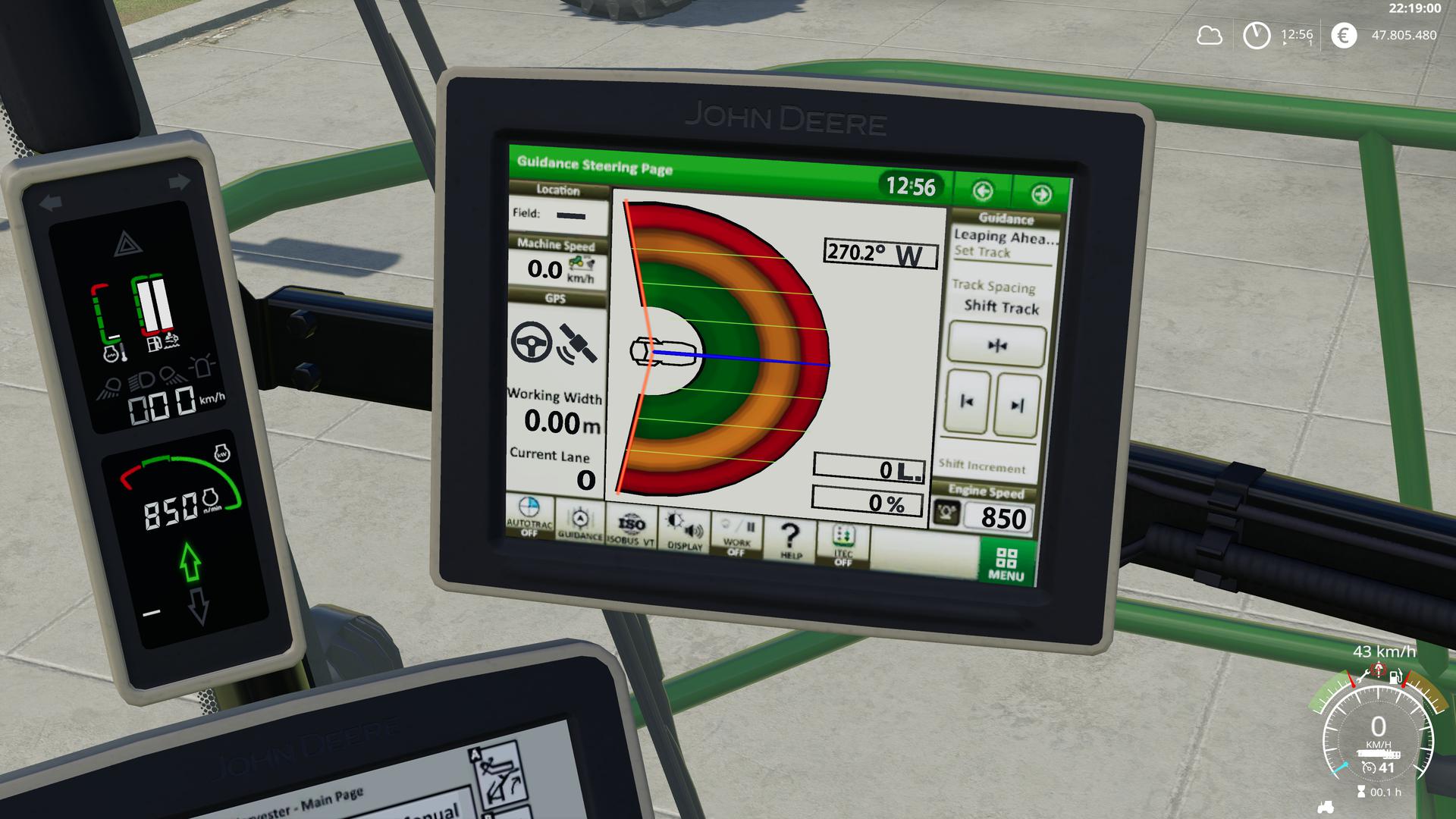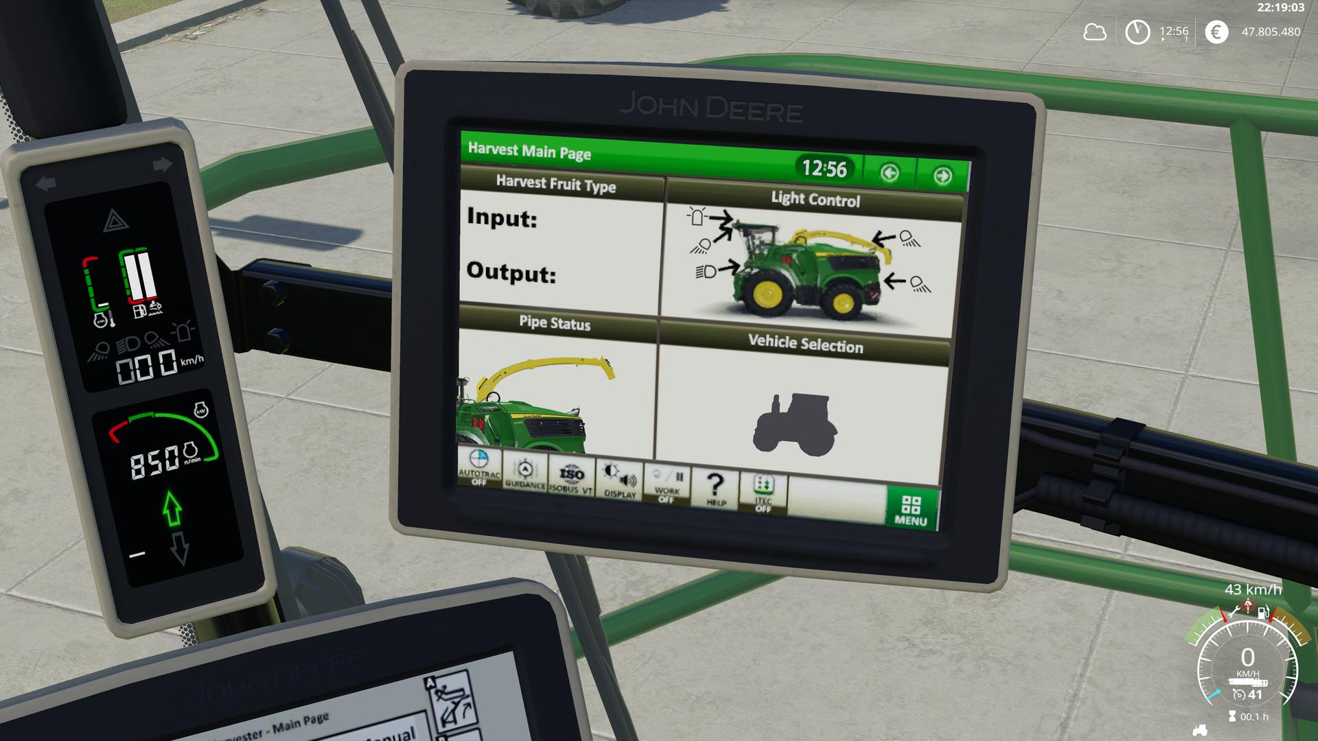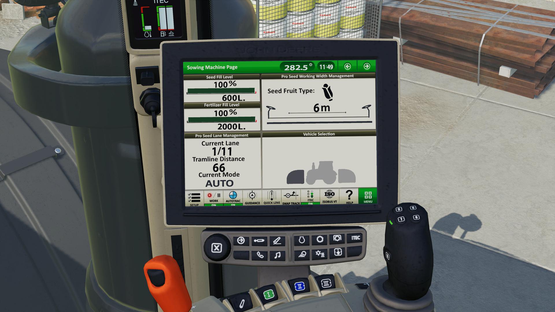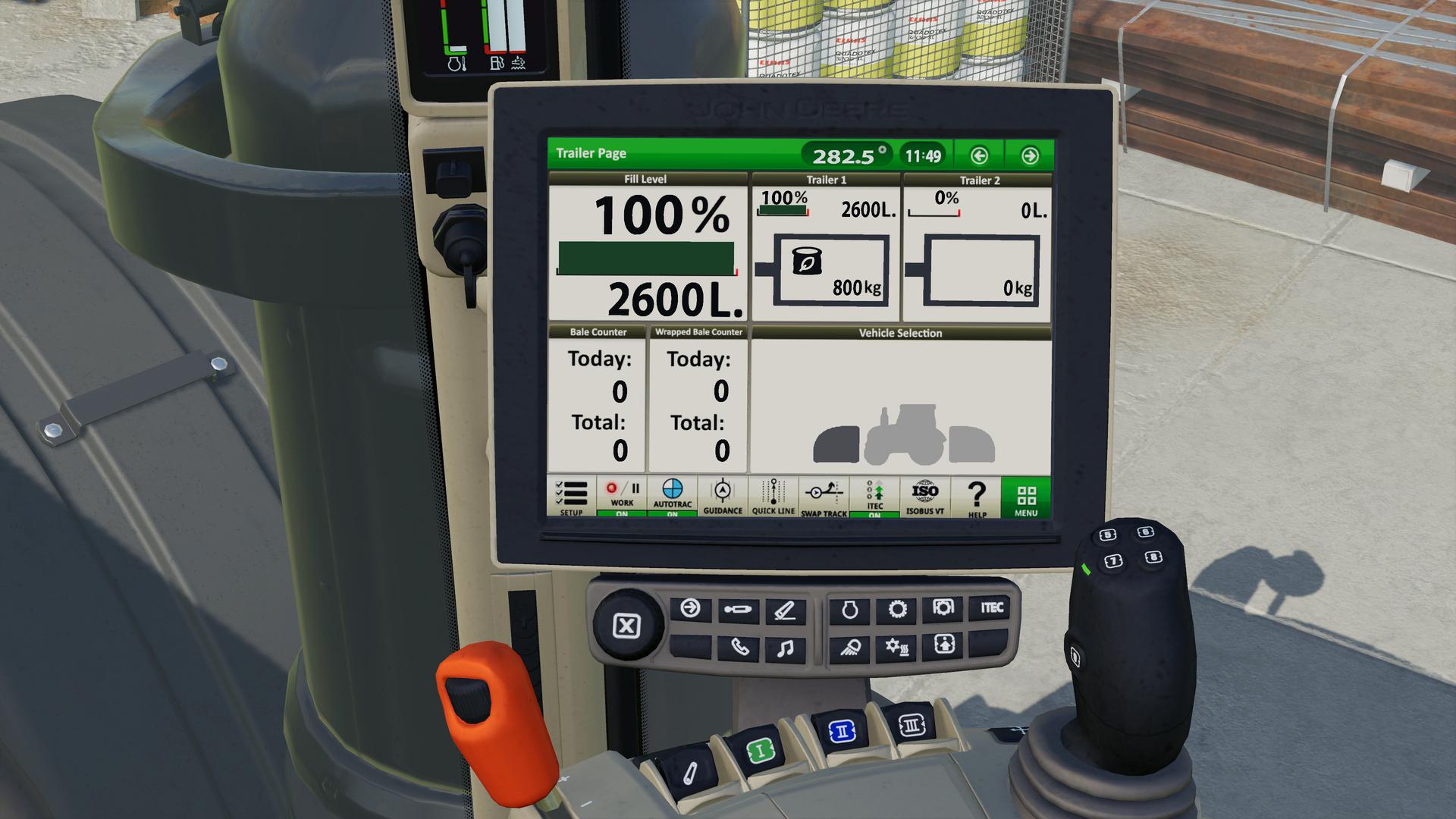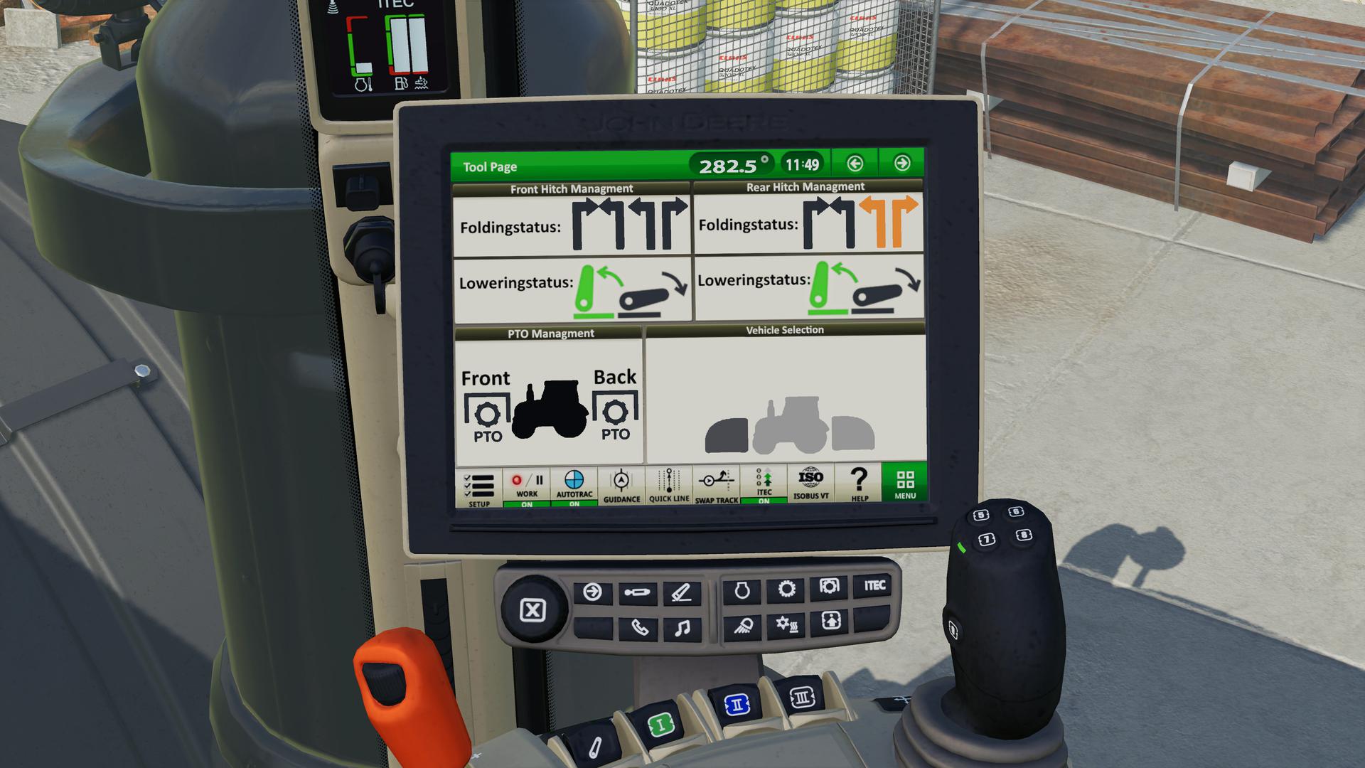Furthermore, you can now adjust the cruise control in the vehicles from the John Deere Pack in the 0.1 km / h range. So you can e.g. set to 12.6 km / h. Standard key assignment is as follows: