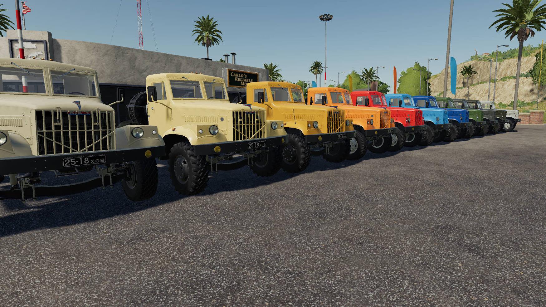 Added container transporter ChMZAP-99064K. In the game it have functions of a platform with tension belts and automatic loading of bales and pallets. For autoloading to work, you need the FS19_EasyAutoLoad by alfalfa6945 activated.