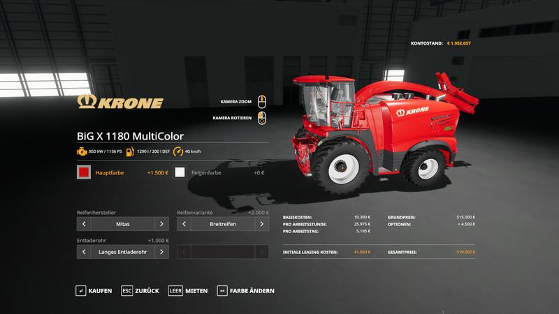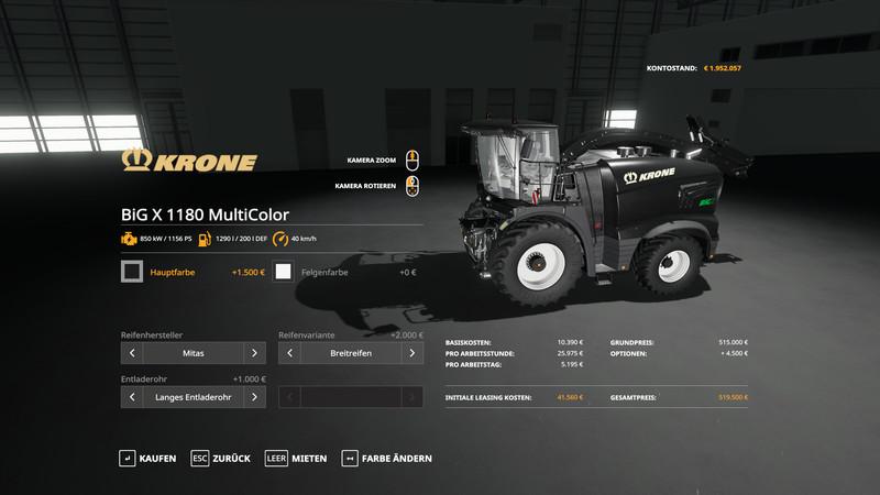 FS19 Krone Pack BigX1180 & X-Collect900-3 – MultiColor v1.1.0.0