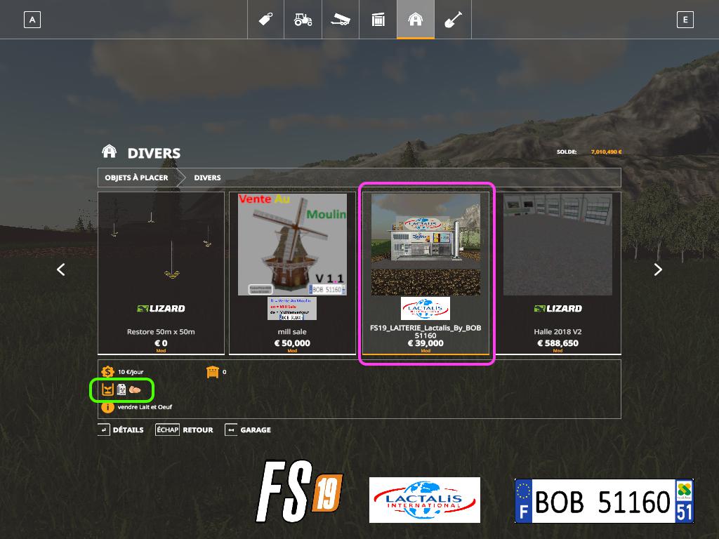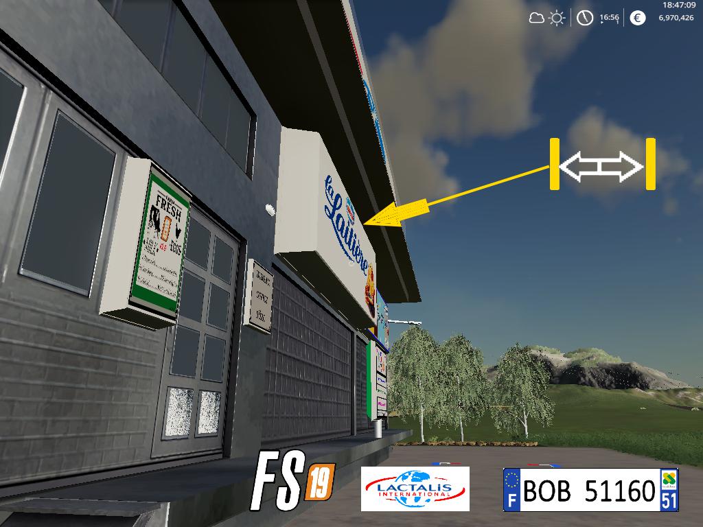 BONJOUR a tous aujourd’hui je vous présente la Laiterie Lactalis je les refaite sur la base de la Laiterie Candia. vous pouvez vendre le lait et aussi les oeufs,J’ai changer les photos en ajoutant des enseignes a la place,pour plus de renseignement voir les photos merci et bon jeu a tous.