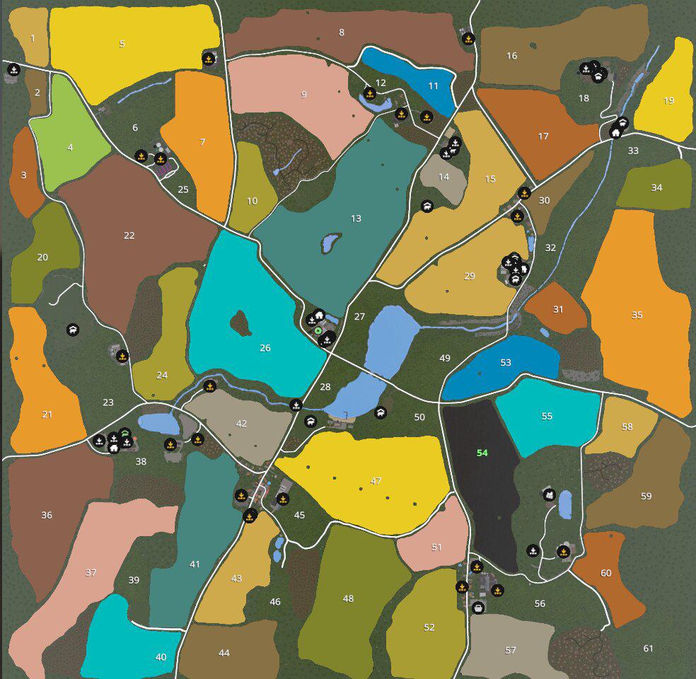 Hello everyone, after many hours of construction and nights without sleep, the time has come. The Loess Hills map is ready. You can expect about 970 hectares of arable land and about 120 hectares of meadows. There are 6 different farms that you can manage. In-game you can paint bushes, grass, weeds, cobblestones, … She is: