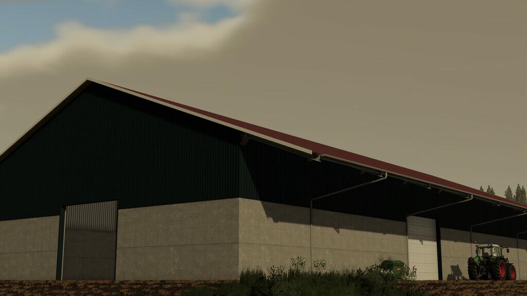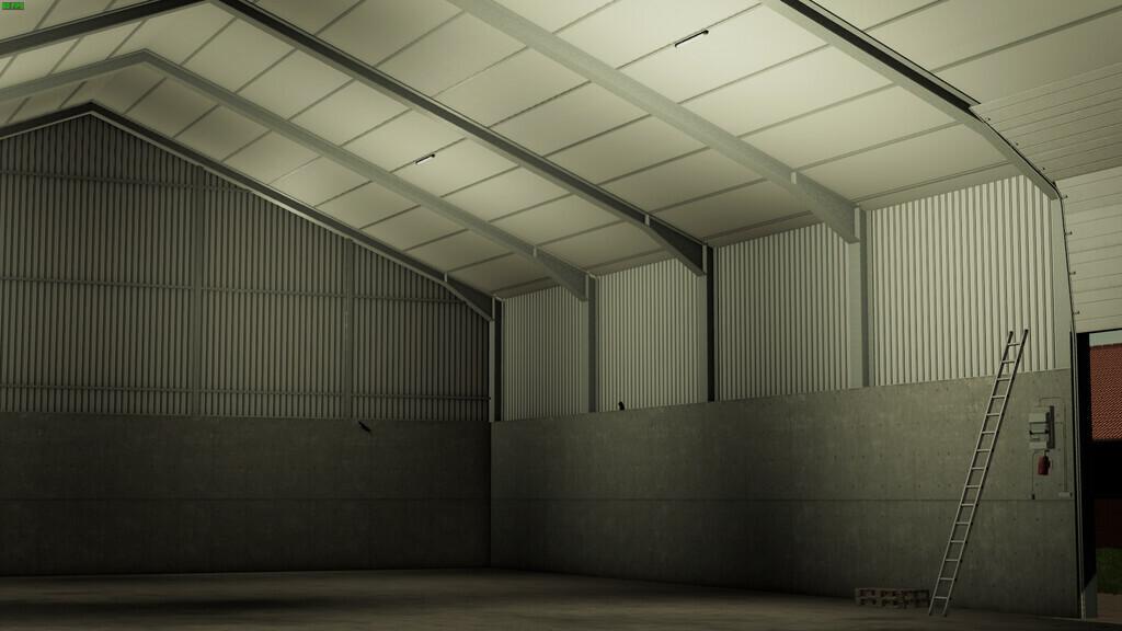 A hall for your crops or machinery. With lights.