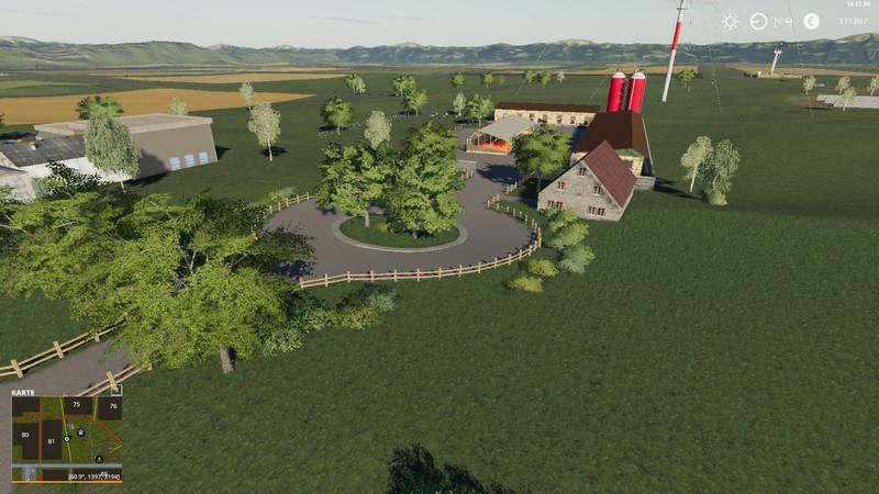 Your farm is located on the edge of the Wiehengebirge, the chickens, pigs and sheep are located directly on the farm, the horse farm is outsourced a bit away from the main courtyard. At the farm silos for cereals, fruits, chopped straw, silage, straw, hay, grass and all kinds of fruit are harvested, which can be harvested on the map.