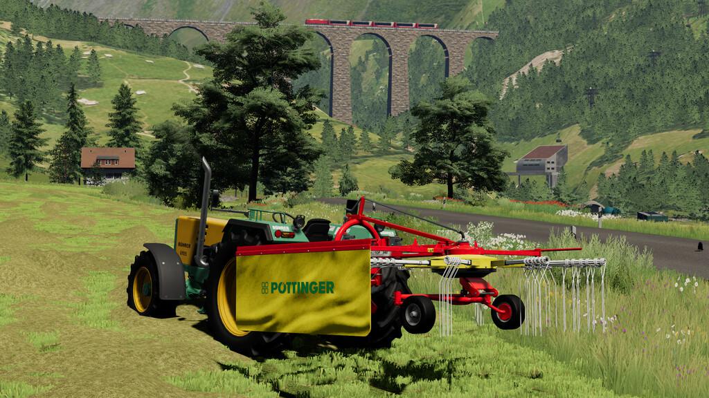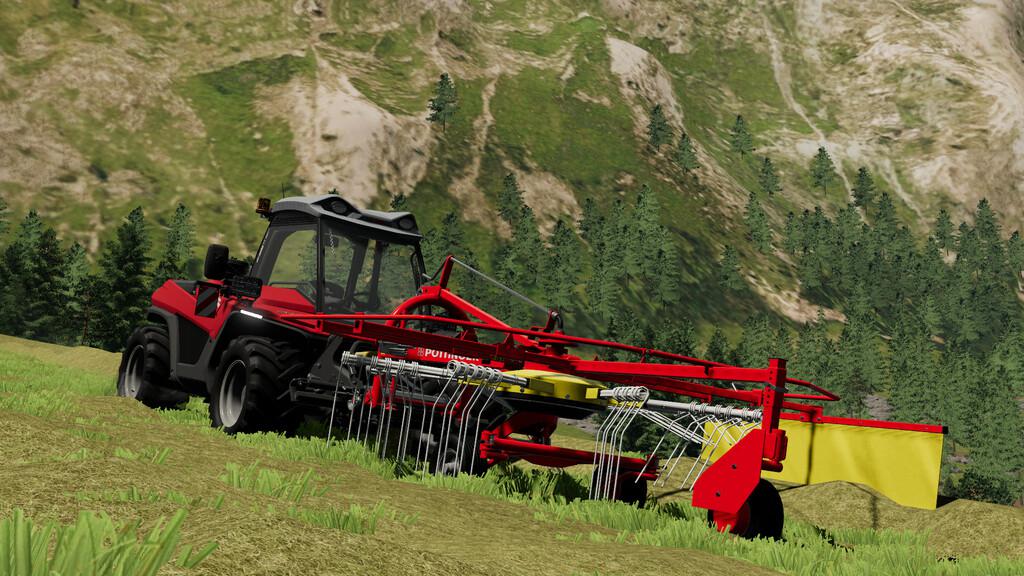The Pöttinger EUROTOP 340 is a rear rake with a working width of 3,40 meters. It is designed for use in alpine regions. With only 400 kg it is a real lightweight for alpine agriculture.
