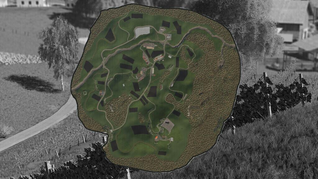 the second one is in the hills and has only cows. Sheeps are moved in the hill from the main farm. Fileds are small and irregular shapes. One part of the map is flat and the second is hilly..