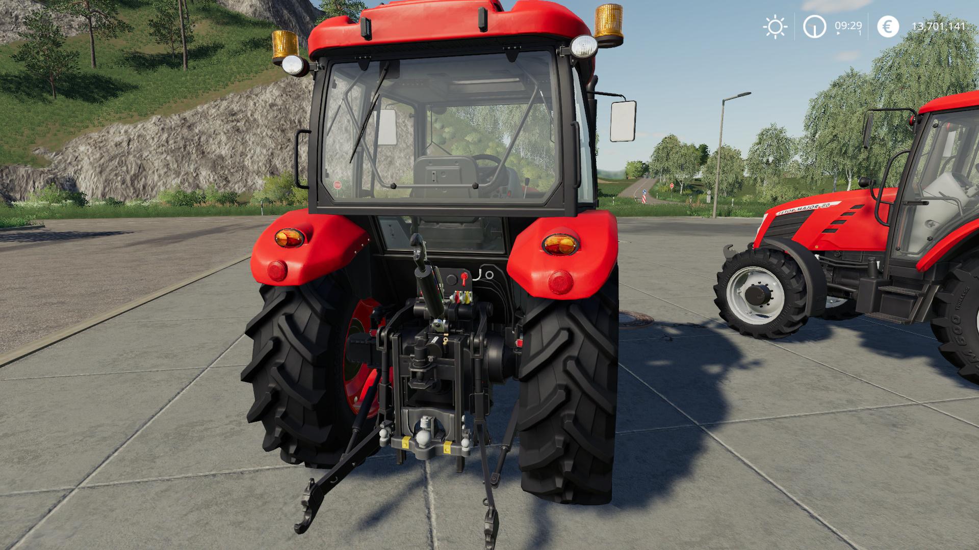– Animated trailer hitches. When using one hitch the other disappear. When attaching trailer to front trailer hitch the front three point hitch arms and top link disappear as well.