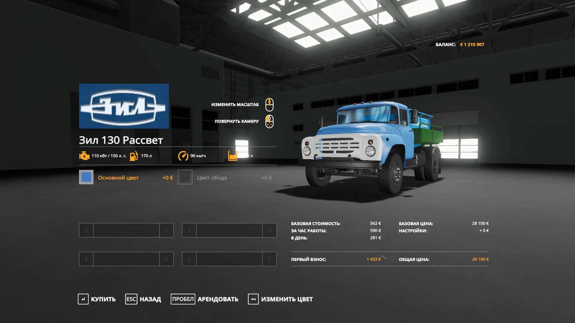 ZIL-130 for transportation of live fish and fry on some maps (Russian expanses, Svapa agro, green valley) – Power: 110 kW / 150 hp; – Speed: 90 km / h; – The volume of the fuel tank: 170 l.; – Cost: 28 100 €; – Choice of the main color; – Choice of rim color; – Animated devices, cardan, mud flaps; – Working mirrors; – Working lighting equipment; – Leaves traces; – Volume: 7,000 liters.