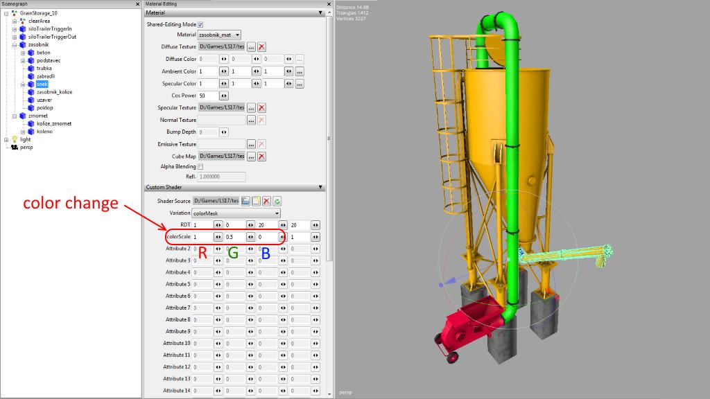 In Giants Editor you can change color of storage, pneumatic conveyor and tubes individually and also change their amount of rust as shown in the screenshots.