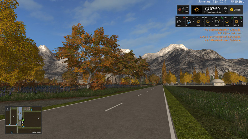 Hi this is my first map for the LS 17. Great Country has 21 fields from 2.5 ha to 23.5 ha, one of which is already in your possession. It is chopped straw installed. Now a small listing of the built-up objects or buildings.