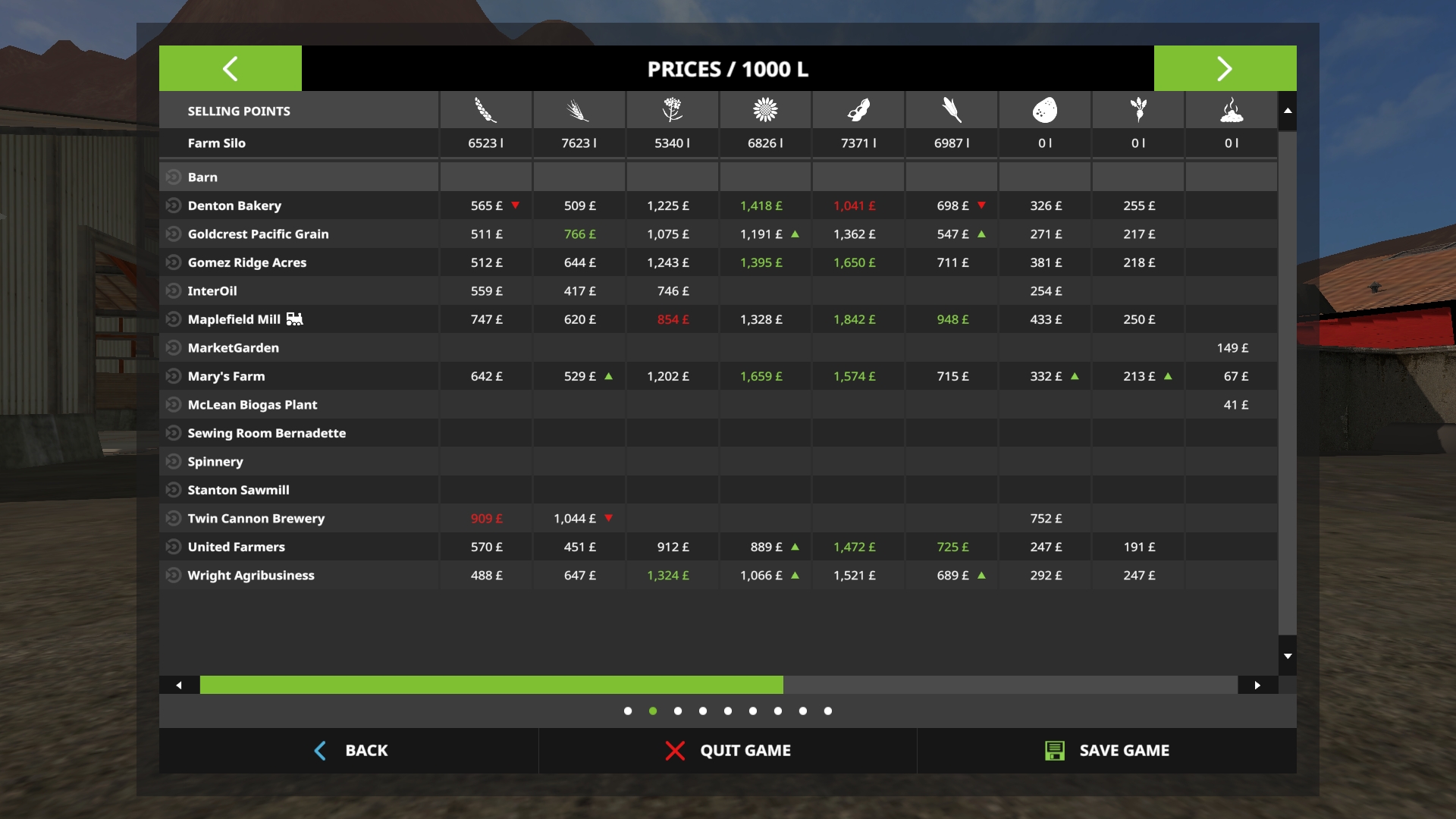Is many new selling points. Different prices and demands… For example “MarketGarden” – Very high prices, low demand (price drop after 50 000l) and limited opening time (8AM-8PM), “Inter Oil” – Lower prices, very big demand (3 000 000l) and fast price reset.