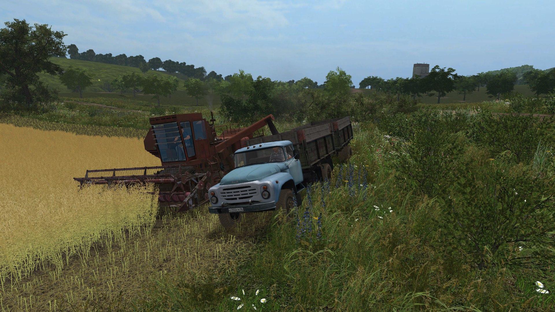 Standard animals. There is construction (garages, greenhouses). On the map are standard cultures + oats. rye. a flock. triticale, millet, alfalfa, clover, hops, carrots, onions, spinach, peas, beans + apples, pear, plum, cherry, 2 grape varieties, honey, + compost, sand, gravel. Cabbage, tomato, pepper, eggplant, strawberry are greenhouses. Sand, gravel and coal. Factories: a sawmill, a sugar mill, a mill, a dairy, a brewery, a butter mill, a bakery, an oil refinery, a cannery, a winery, a fuel factory, an apiary, a meat processing plant, boards + pallets, chips, pallets, dairy (ice cream, condensed milk, kefir) (sugar, powdered sugar, and lime), a mill (wheat flour + barley, flour + production on pallets).