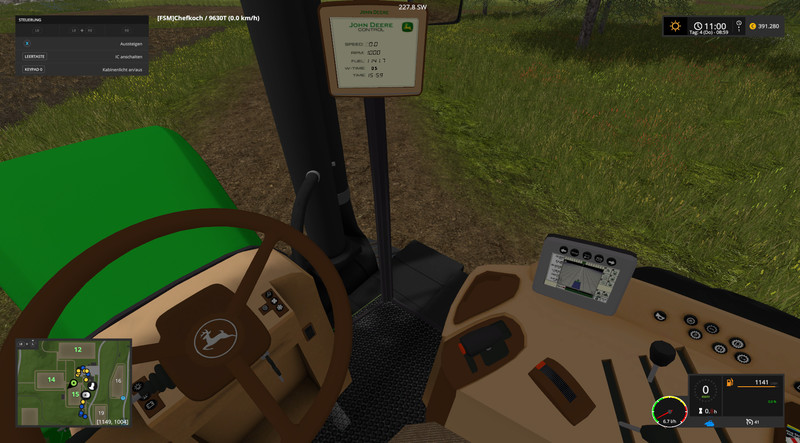 – Display of speed, engine speed, tank volume, operating time and in-game time in the cabin.