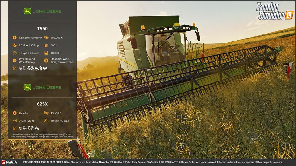 John Deere Combines and More Vehicles in Farming Simulator 19
