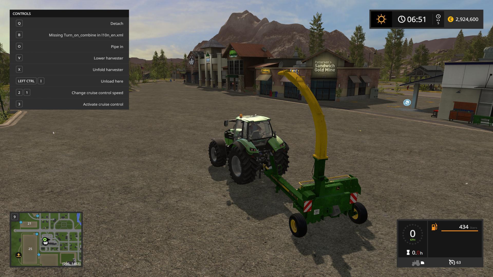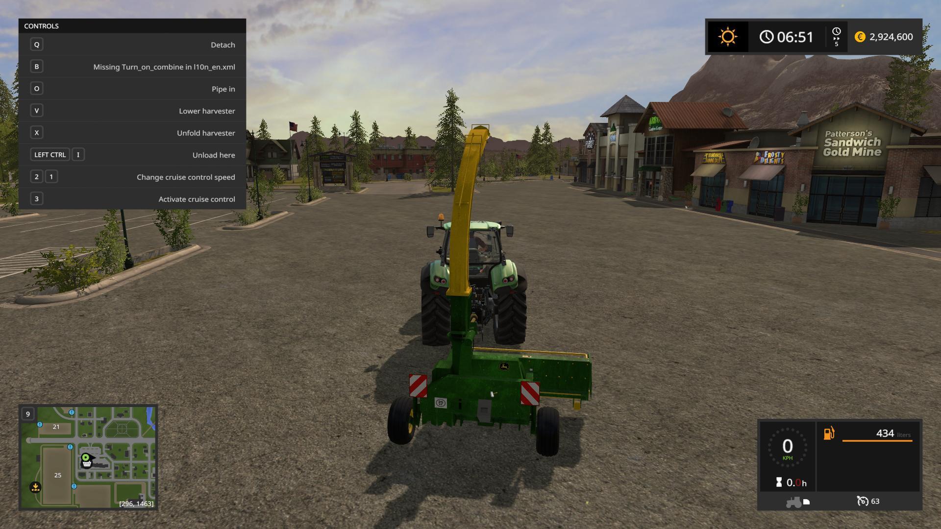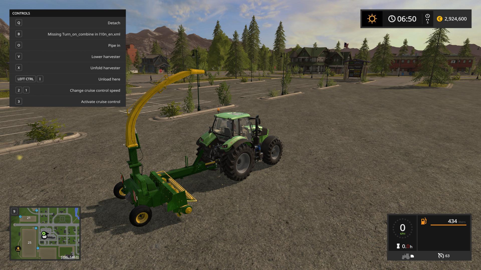 the B key has “Missing Turn_on_combine in l10n_en.xml” and it starts the combine but doesn’t harvest the crops