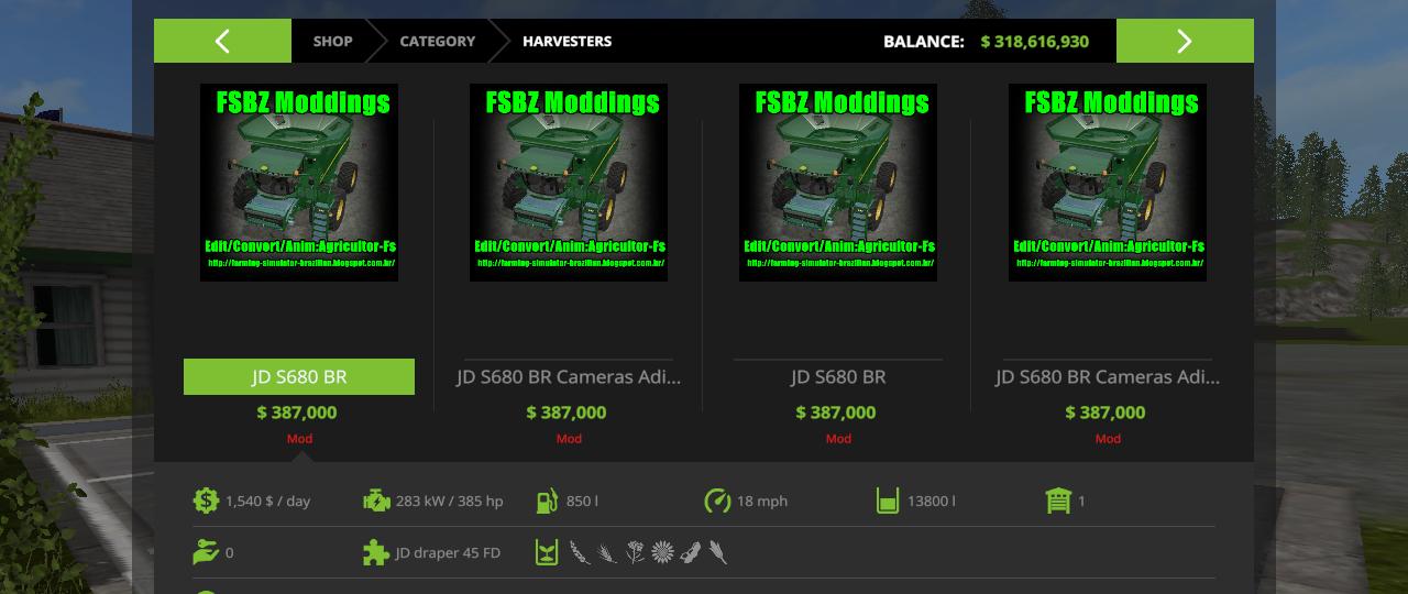 This is a personal conversion and edit of the JD 9630 scaled down to be more realistic and comparable to other in game tractors. I have added wheel configuration options when purchasing (wheel weight option has terra tires). Also, I Americanized it by removing all the Euro signage. Mod is fully washable. Everything works per my testing