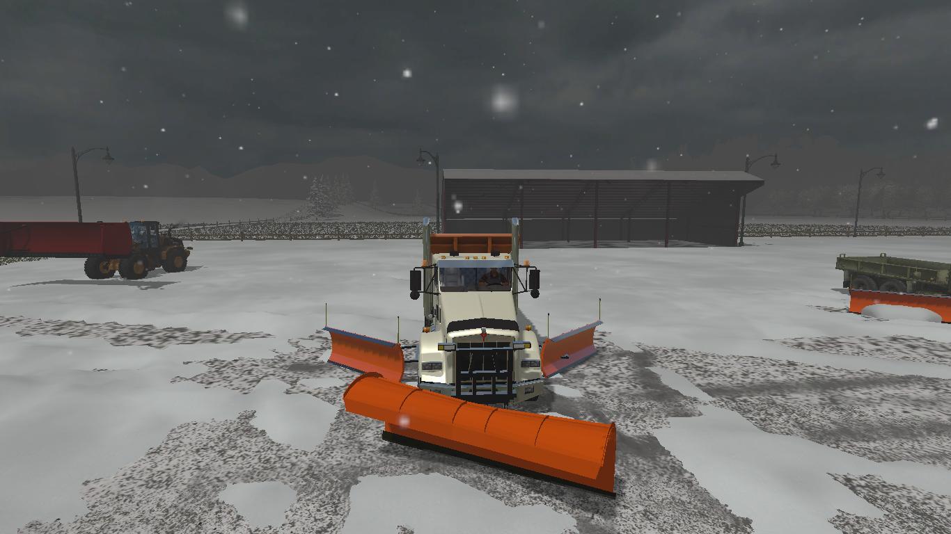 The truck has a working front snow plow mount as well as wing plow mounts on both sides.