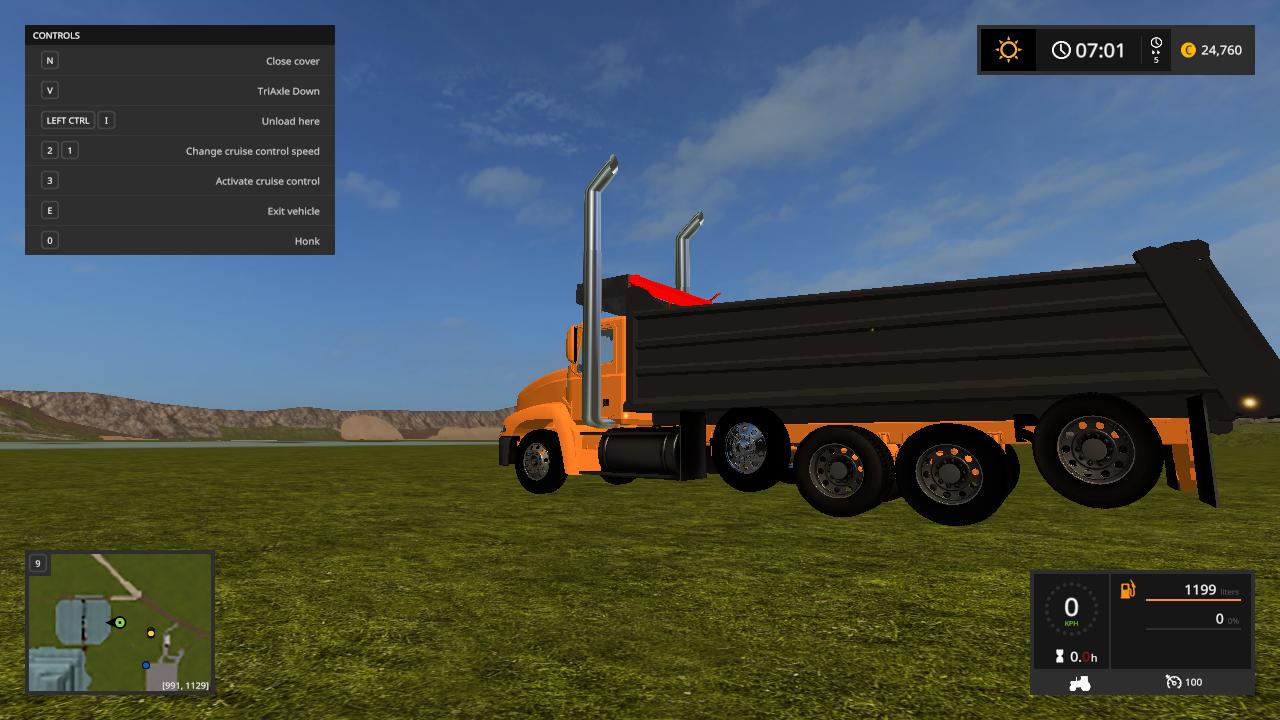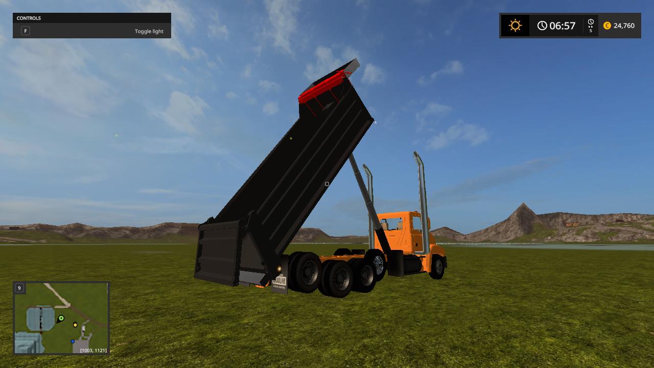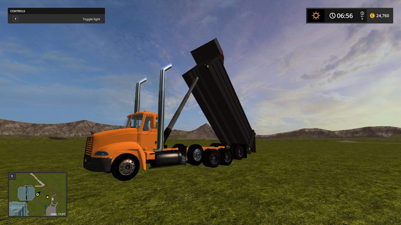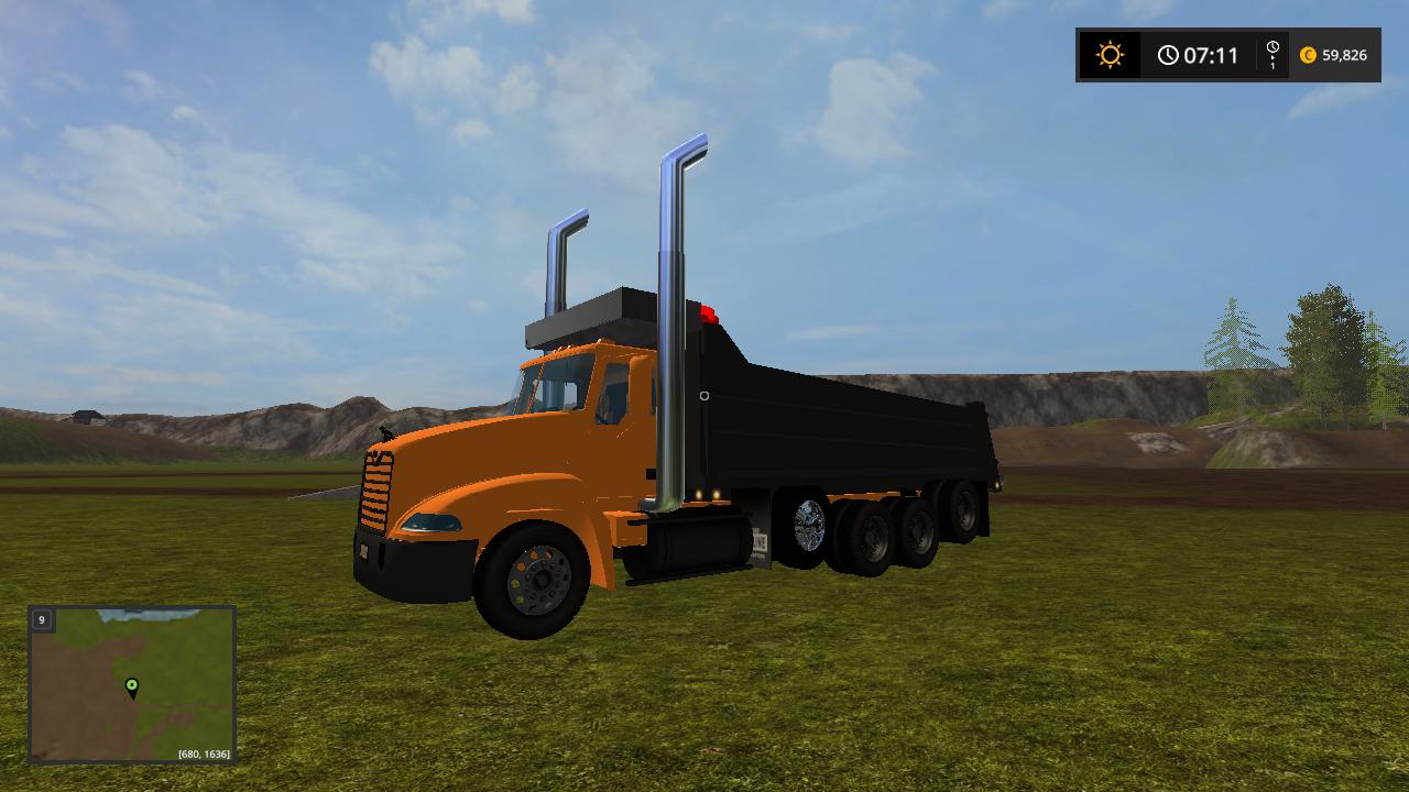Hello here i present to you my mack vision dump truck the truck is based off the mack vision grain truck from fs15 and was converted over by me while back and i changed the bed to a dump bed and fixed the cylinders to make it dump like a dump truck instead of grain truck i redone the xml to make it support the dump bed so it can hold the fill planes i fixed the fill planes to fit the bed and i added a cab protecter to the bed to make it look like a real life dump truck and made the whole truck color selable and i added roal coal to the exzaust and added new exzaust pipes in and i also added a spread gate to help spead your load i put over alot of time into this truck and i hope you enjoy this truck all credits goes to the original creater and me for the bed and xml work.