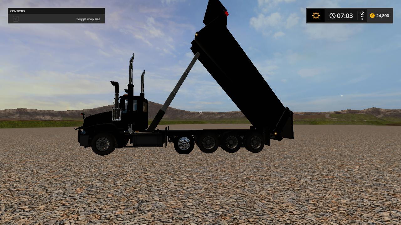 I bring you guys my second verson of the mack vision dump truck for fs17 what i added 1. new exhaust and added air breathers to the cab and made the smoke from the exzaust better and added a plow hitch to it so you can plow snow and i also made the whole truck color selectable and i also added a beacon to it to make it look like a work truck and i fixed the cameras so now it dont go side to side no more and capacity is 50000 liters hope you enjoy the mod let me know it you have any problems with it.