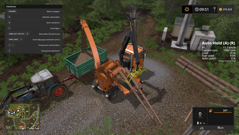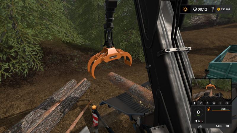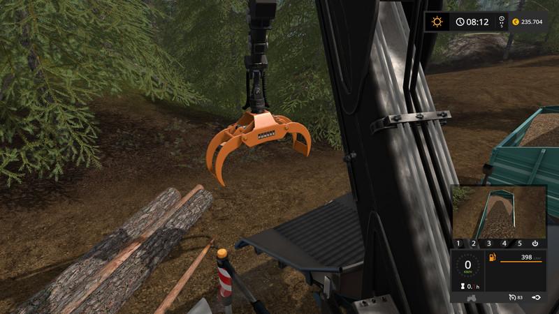 – Added surveillance cameras. This feature has 3 different surveillance cameras on the vehicle. Via the left ALT key the mouse menu can be activated and thus the cameras can be selected in the HUD on the lower right on the numbers 1-5. Camera 1 offers a return camera, Camera 2 is used to monitor the chopper table, so you can safely and straight introduce tree trunks. Camera 3 is a pipe-cam, which is located on the ejector tube and thus monitors the shredded material ejection. If you do not want this feature, the classic version without camera is also available in the shop!