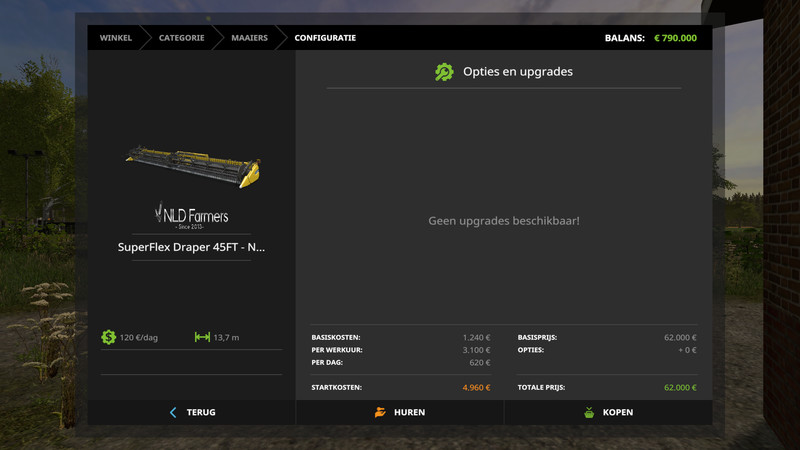 The SuperFlex Draper 45FT Cutter speed increased to 14 (in-game this is 13, work speed).