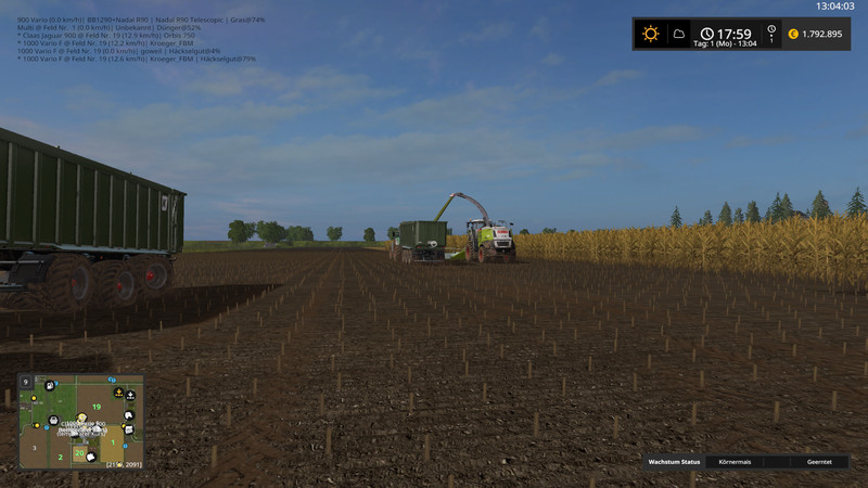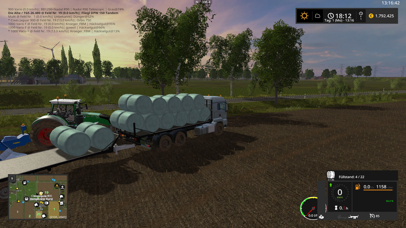 North German landscape with 45 fields and 16 grass fields. 4 farms and 4 biogas plants, Hühnerhof and Rinderhof. Extra fruit varieties Oats, rye and hops. Take a look at the video for the map presentation in peace.