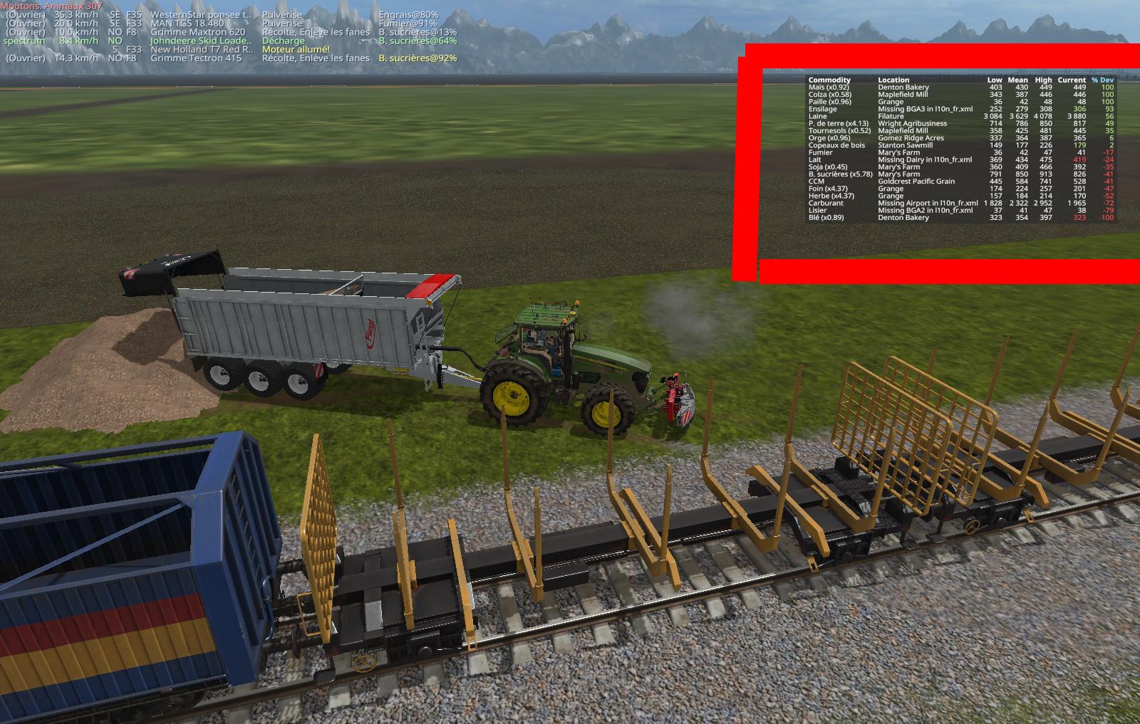 tableau indiquand le prix maximal obtenable sur la map jouer en prenant compte tous les points de vente meme le plaçable