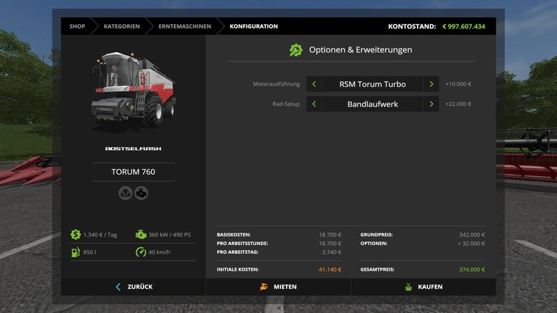 Rostselmash Torum 760 pack options V 1.0 Combine