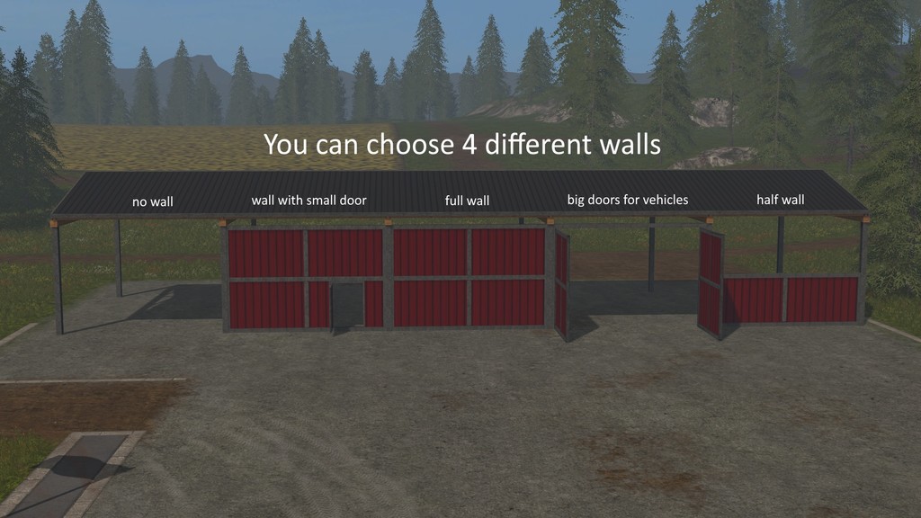 This hall can be uses as a shelter, a closed garage, or as a storage for bulk. If you want to tip the bulk inside the hall be sure that you aren´t to close to the walls because the bulk could fall through the walls.