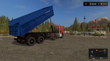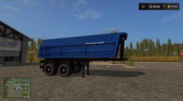 SZAP-9517 -. Two-axle dump trailer, 25 t capacity body volume 16 cubic meters intended for transportation of various bulk construction materials, as part of a train car-tractor having hydraulic equipment. The tilting mechanism allows the unloading platform ago by opening the tailgate with the upper linkage.